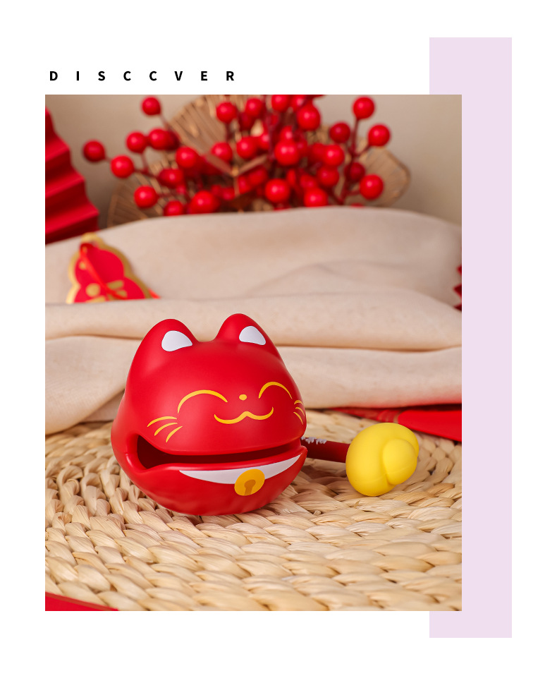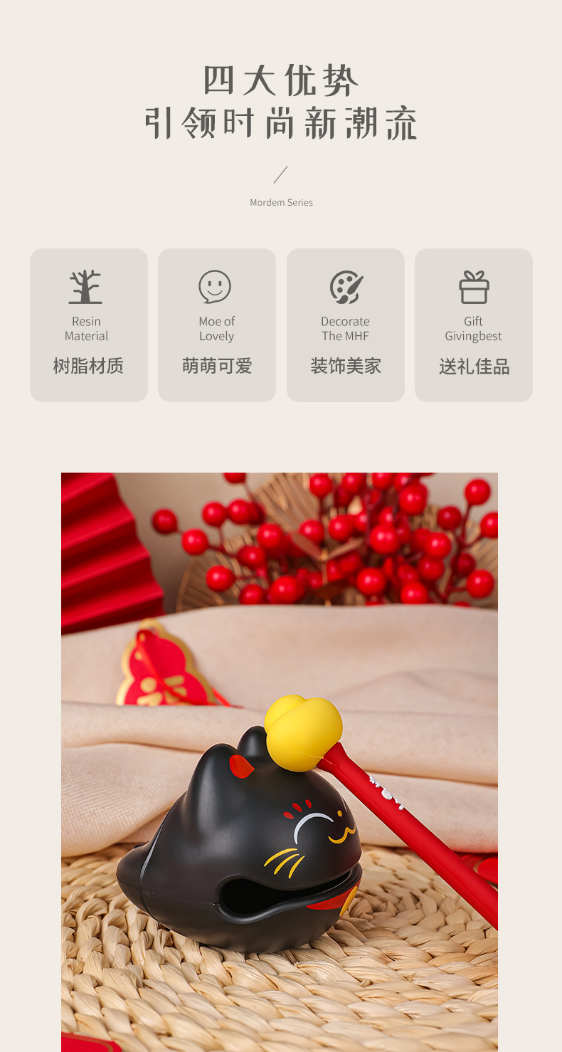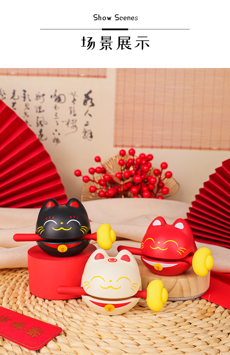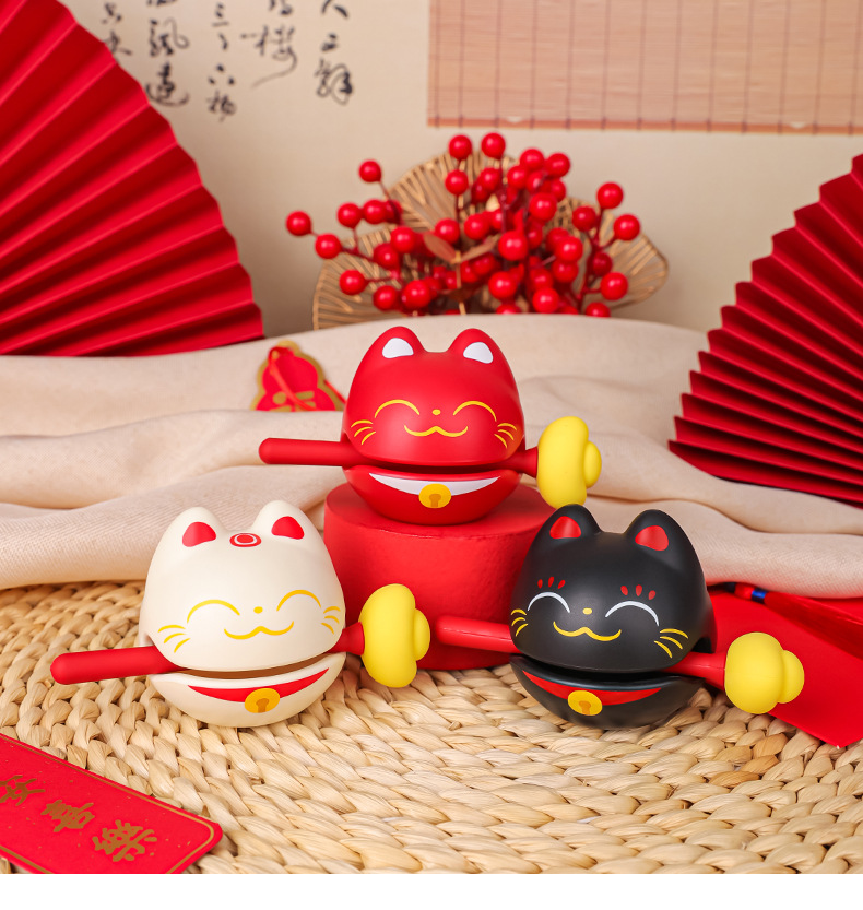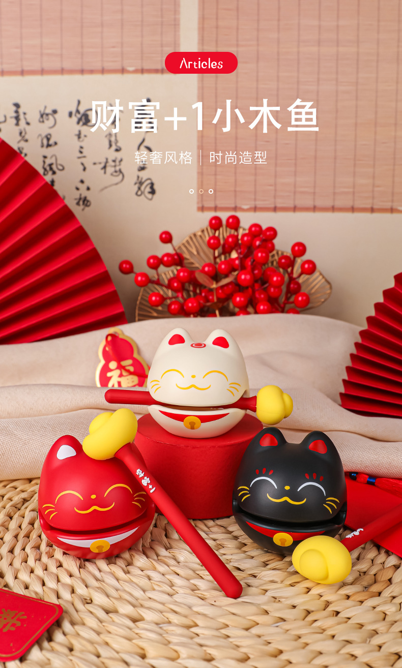 かわいい招き猫の小さい木魚の事務室は心を静めてデスクトップを飾っておもちゃをたたいて変な贈り物をします。