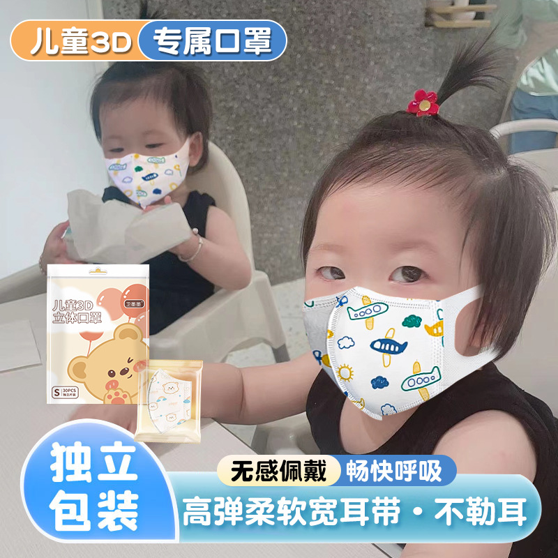 一次性儿童3d立体防护口罩婴儿专用宝宝0-3-6岁透气独立包装