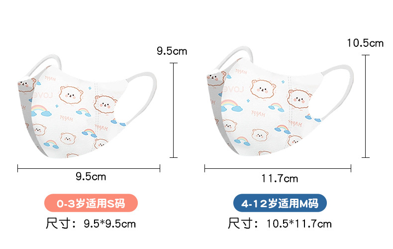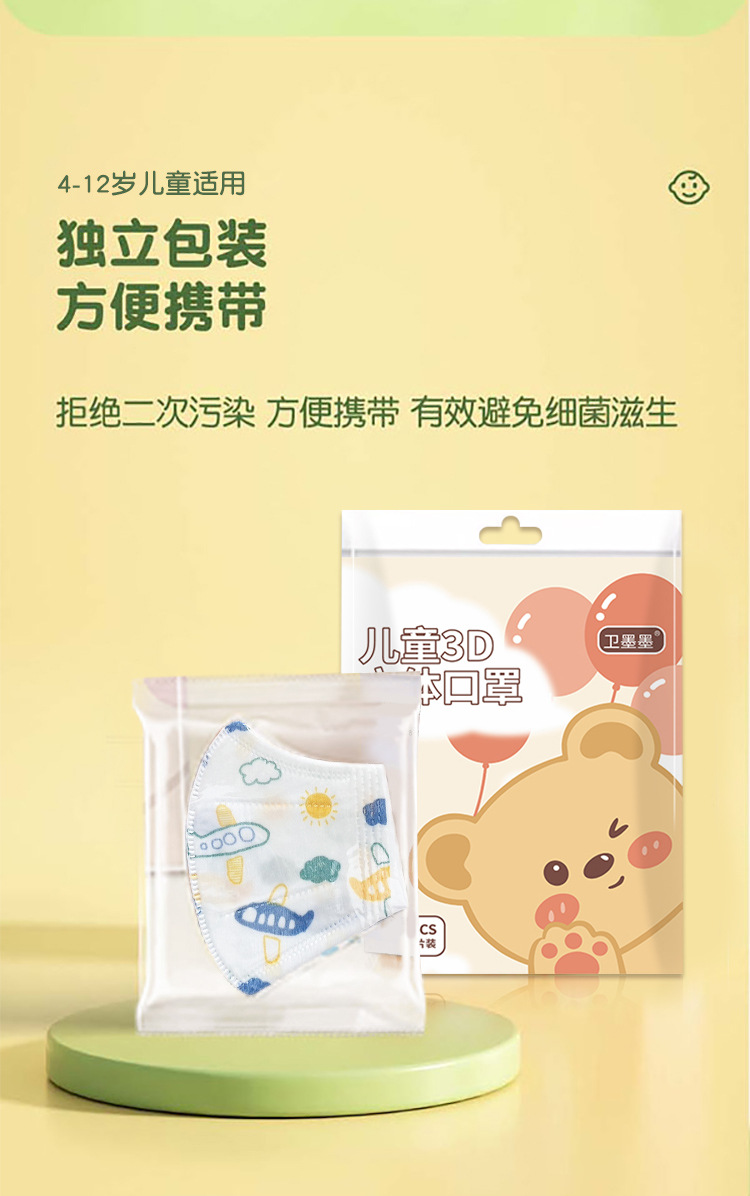 4-12岁儿童口罩3D立体卡通图案独立包装口罩儿童一次性口罩批发