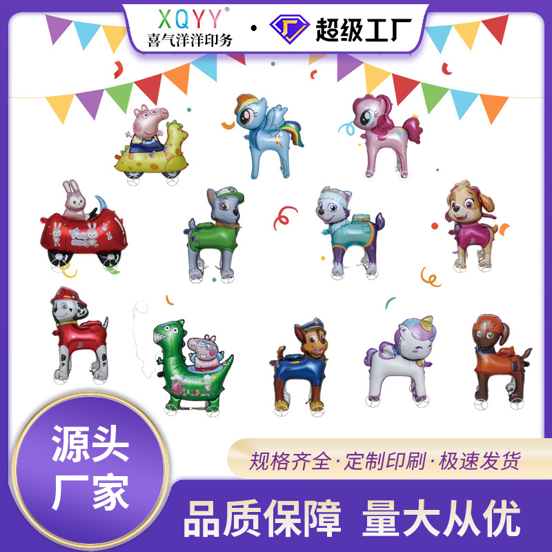 新款立体走路带轮子气球卡通铝膜汪汪队小猪佩奇小马宝莉正版授权