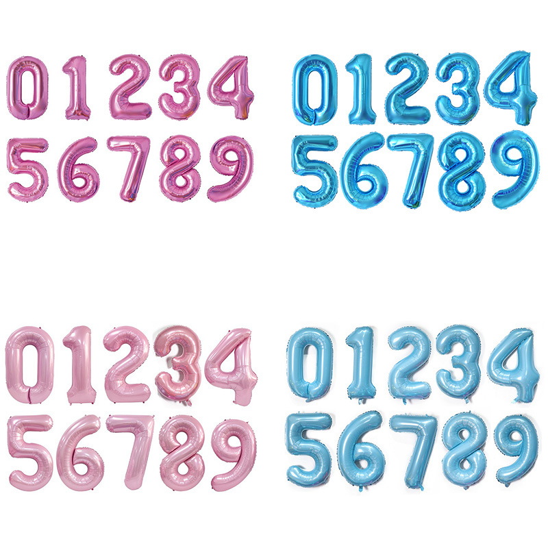 40寸珠光蓝数字气球派对装饰生日背景墙布置气球蓝色玫红珠光粉色