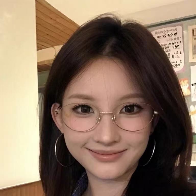 純欲清冷風素顔平光鏡女韓系高智感銀糸細い辺猫眼近視メガネフレーム周囲顔