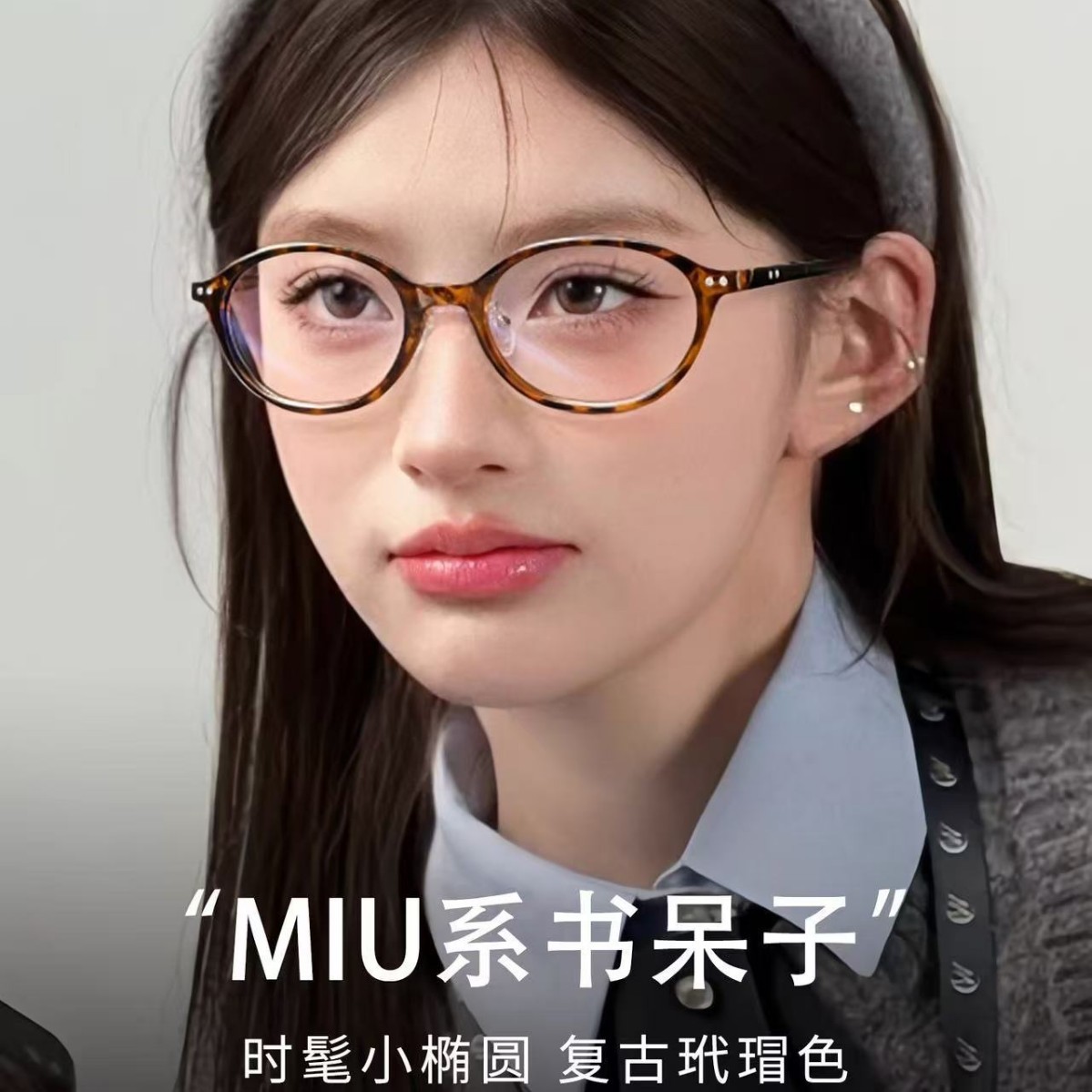 miu系书呆子玳瑁眼镜近视女可配度数超轻豹纹素颜小椭圆眼睛框架