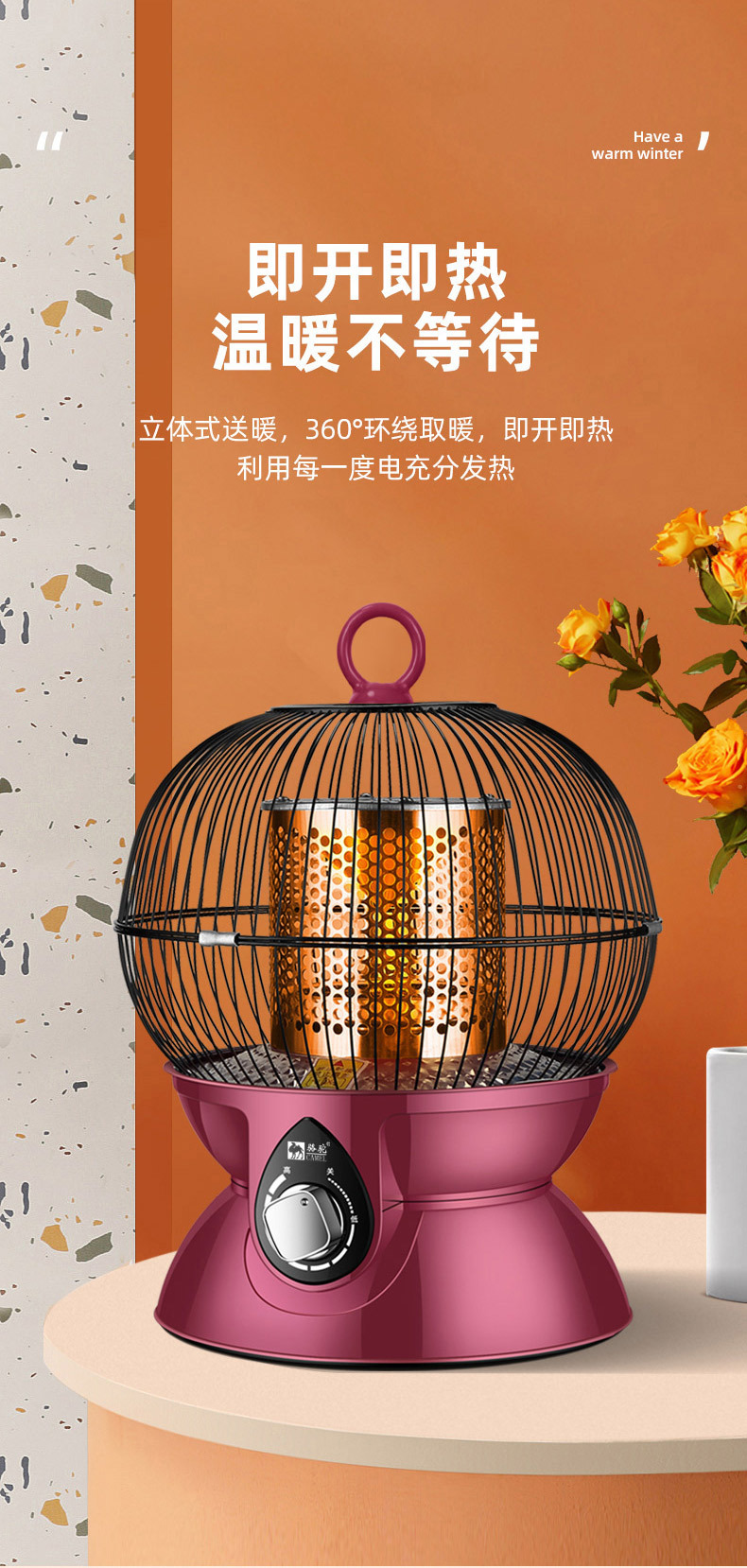 新款志高鸟笼取暖器烤火炉小太阳家用火炉速热电暖器多功能取暖器
