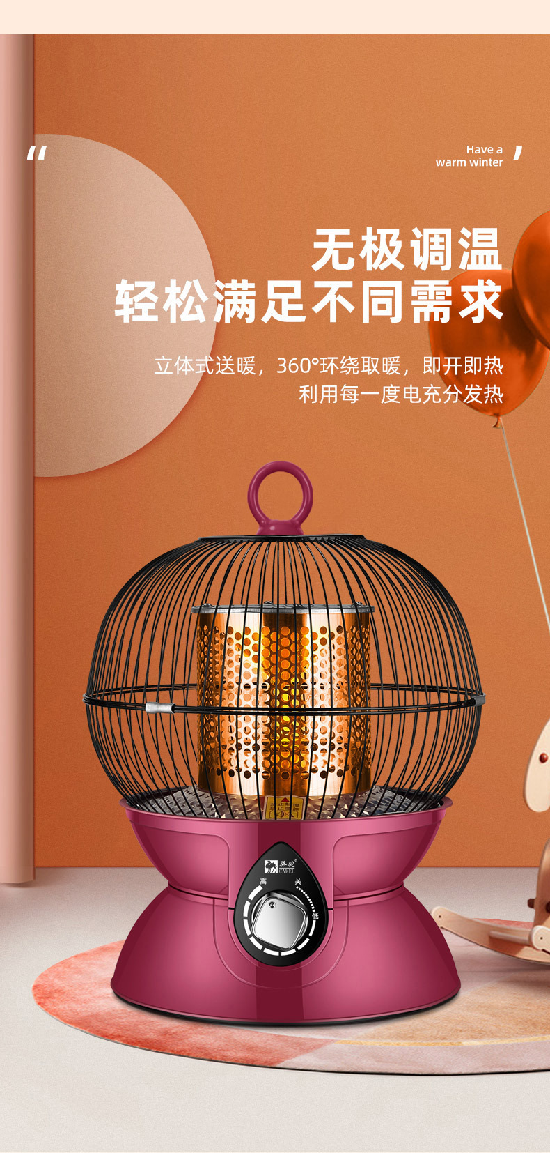 骆驼鸟笼取暖器烤火炉家用小太阳桌下烤火气节能烤火电炉取暖炉