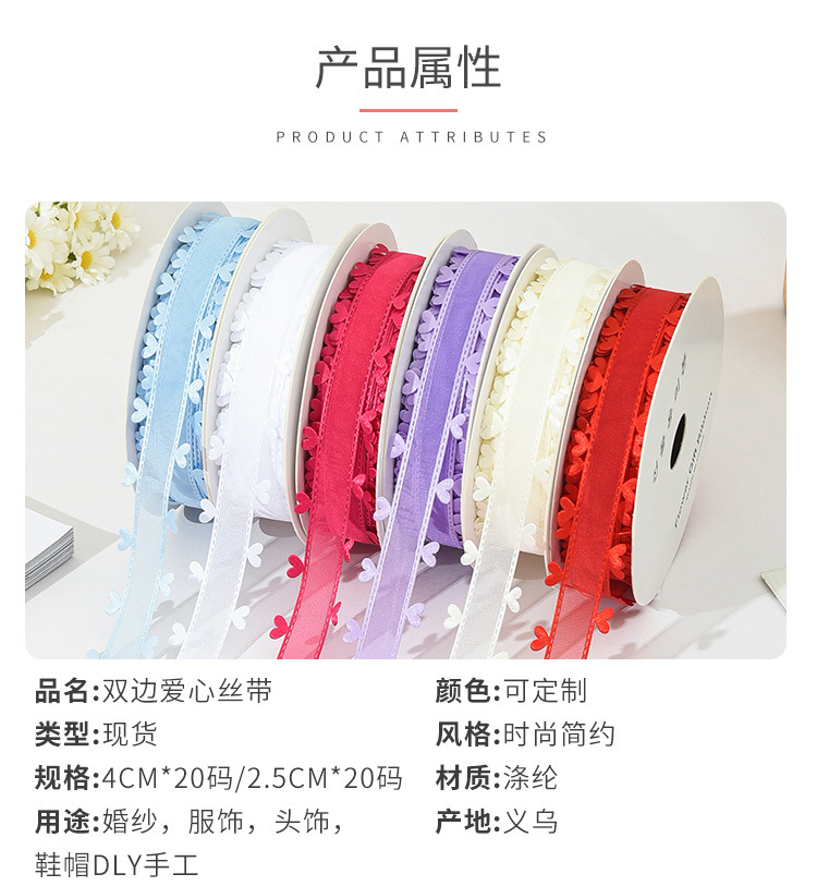 バレンタインカラー二重愛の糸リボンdiyちょう結び髪飾り花ギフト装飾的な包装材料