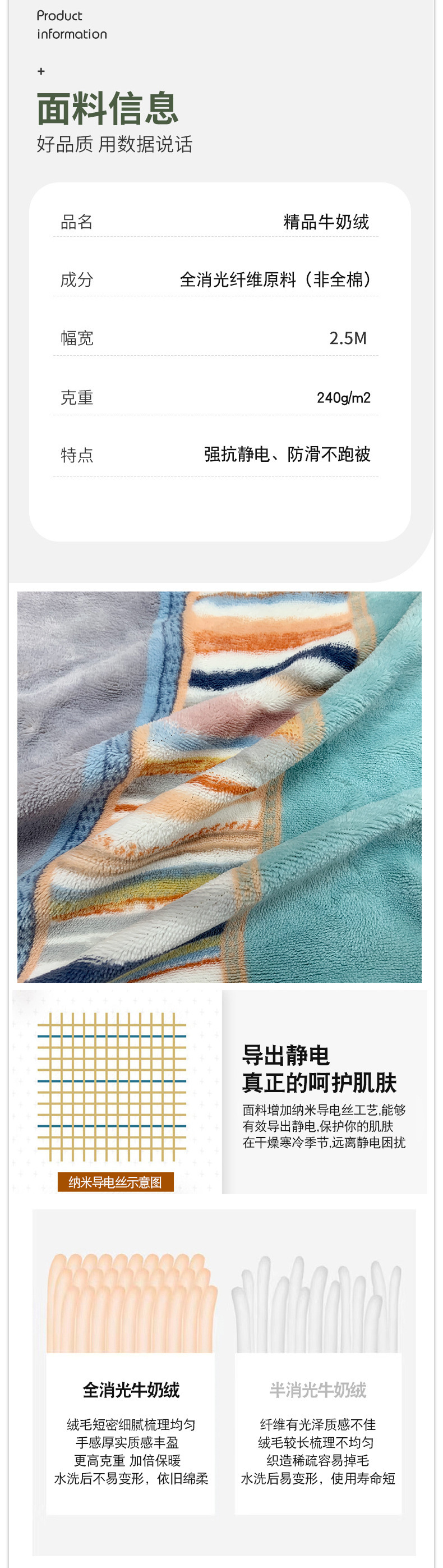 加厚秋冬牛奶绒布料240g高克重单面绒面料2.5米幅宽可做床单被套