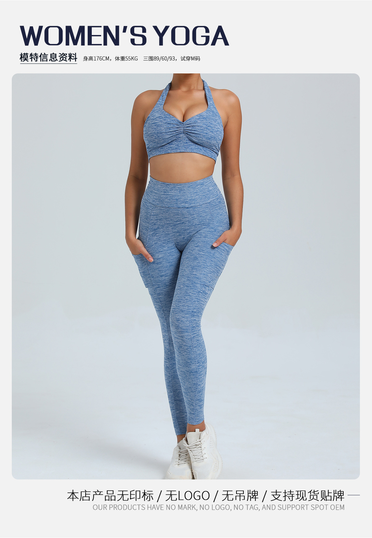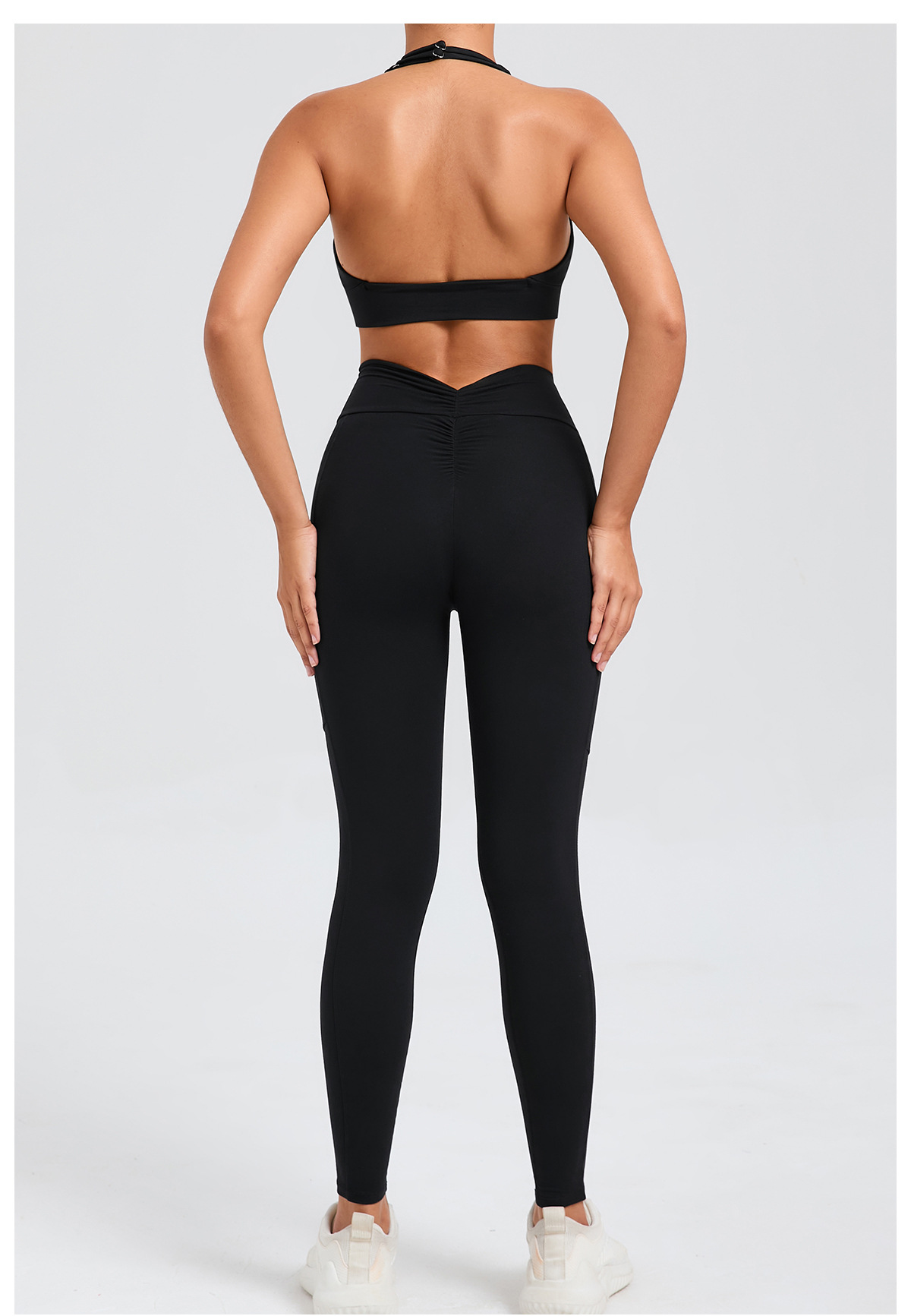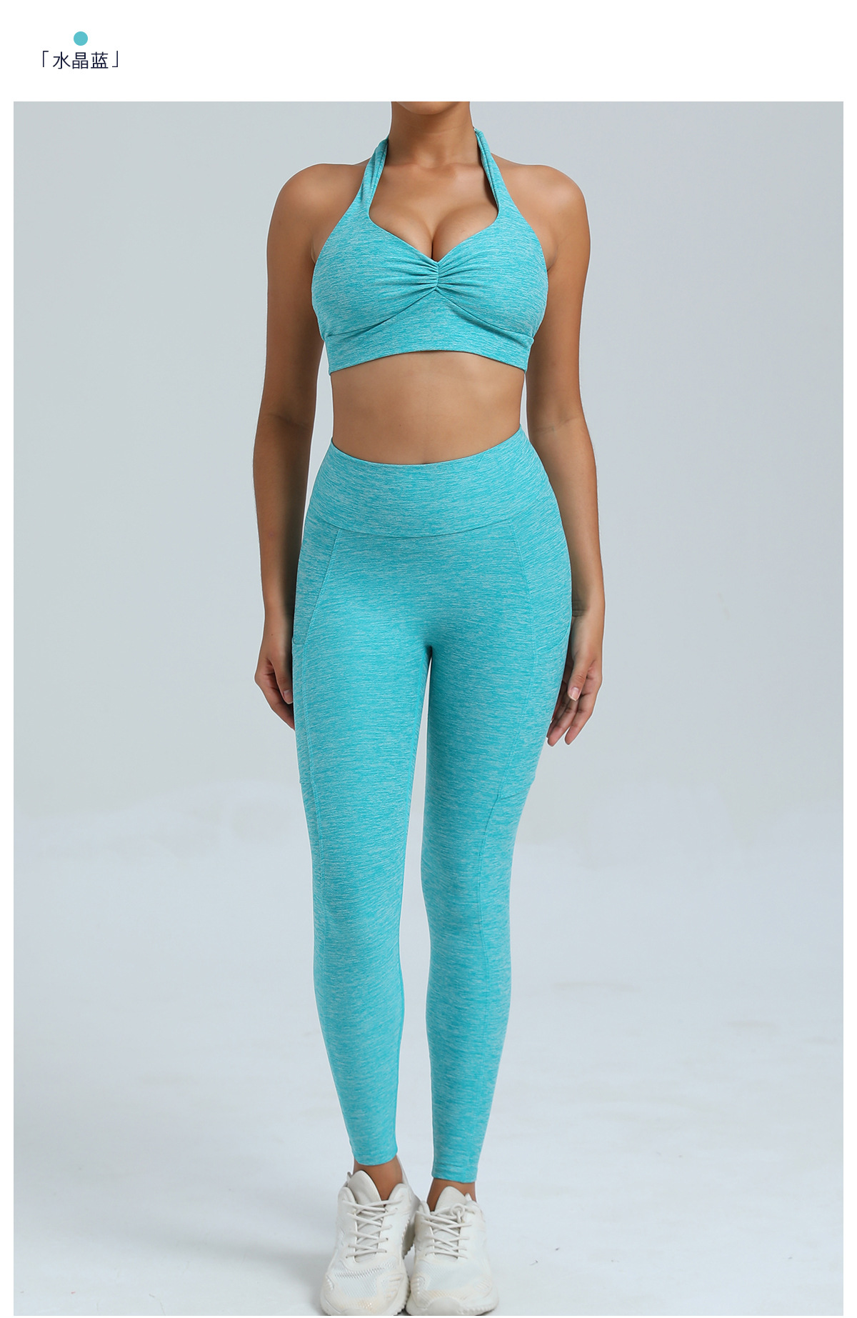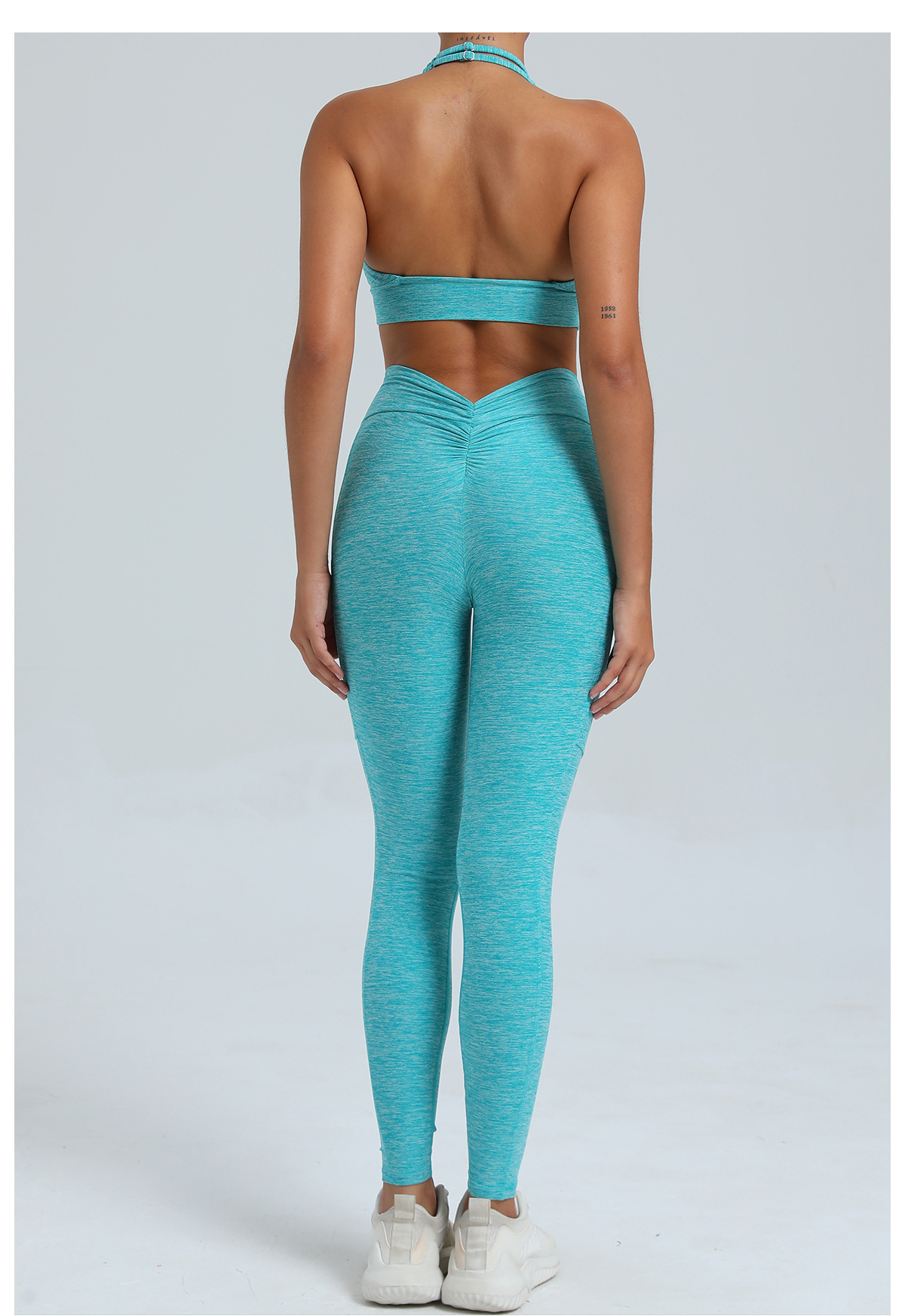クリアランスセール、返品・交換不可、ヨーロッパ風ホルターネック、調節可能な肩紐、桃尻効果、タイトフィットパンツ、ヨガ・フィットネス・スポーツウェアセット