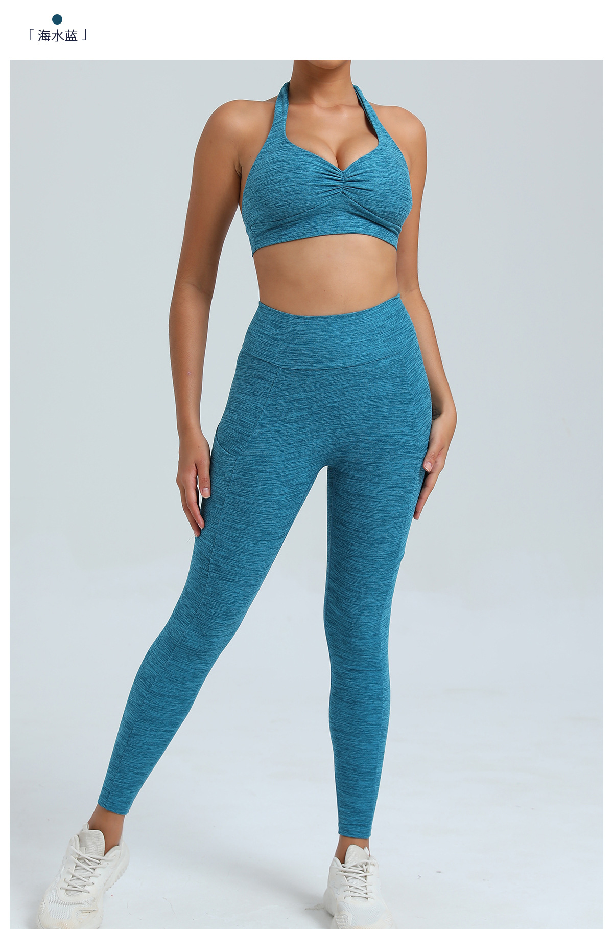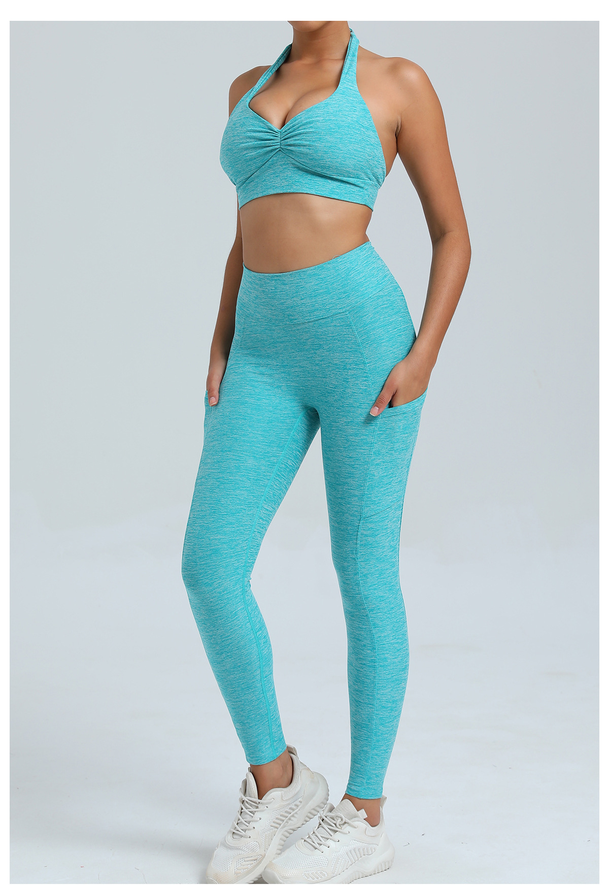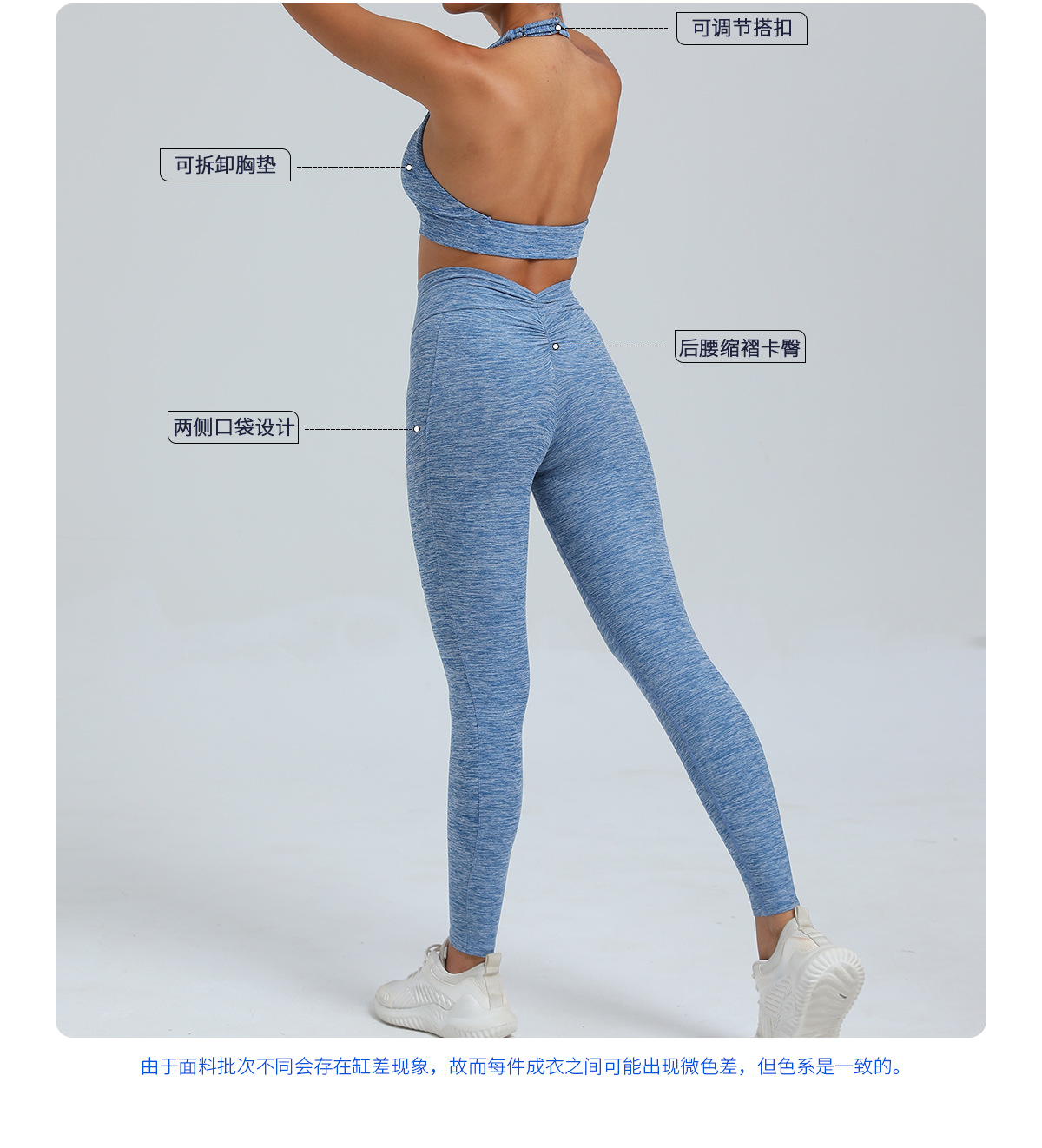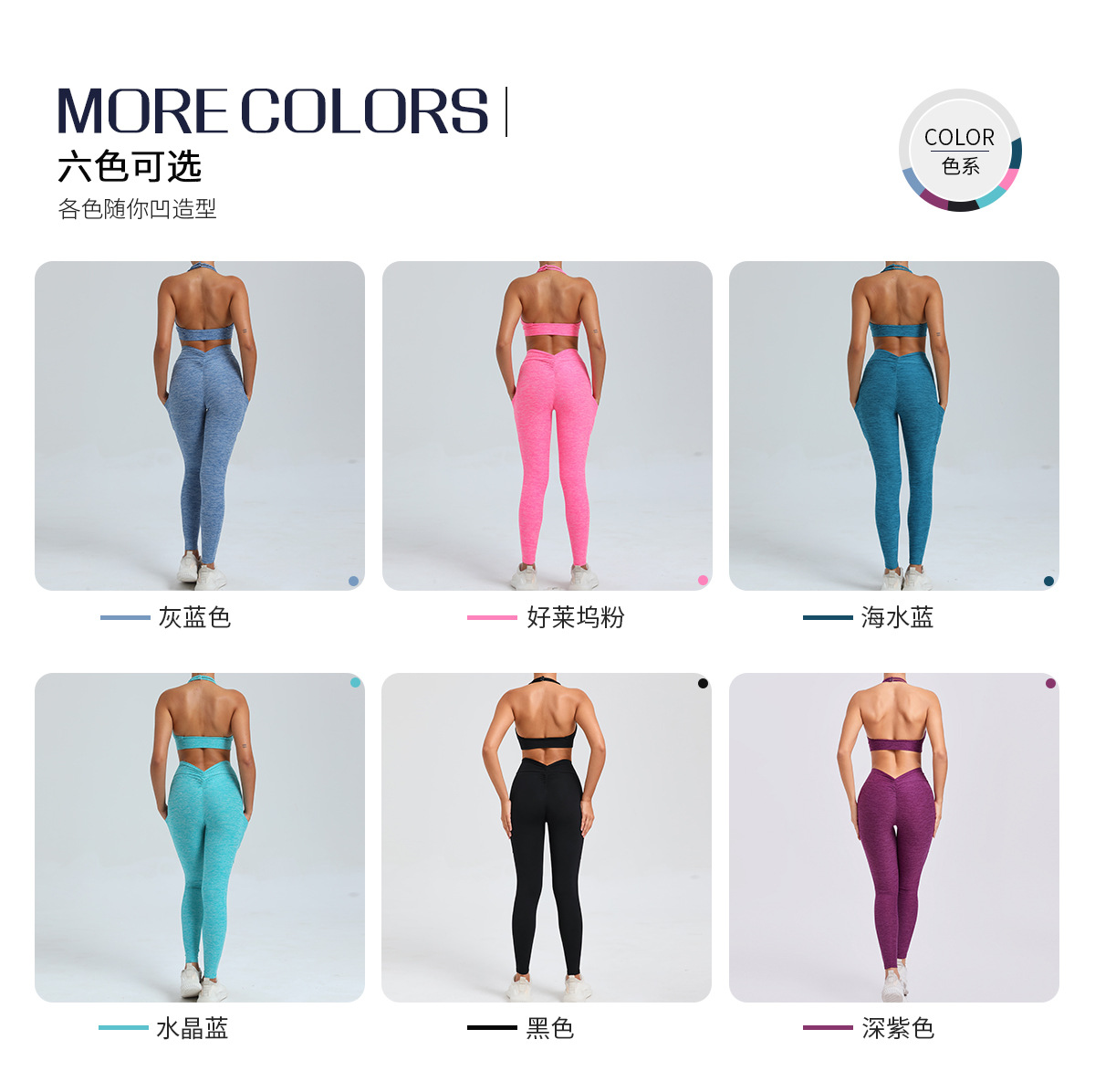 クリアランスセール、返品・交換不可、ヨーロッパ風ホルターネック、調節可能な肩紐、桃尻効果、タイトフィットパンツ、ヨガ・フィットネス・スポーツウェアセット