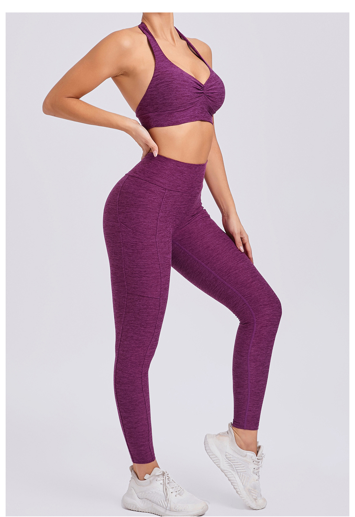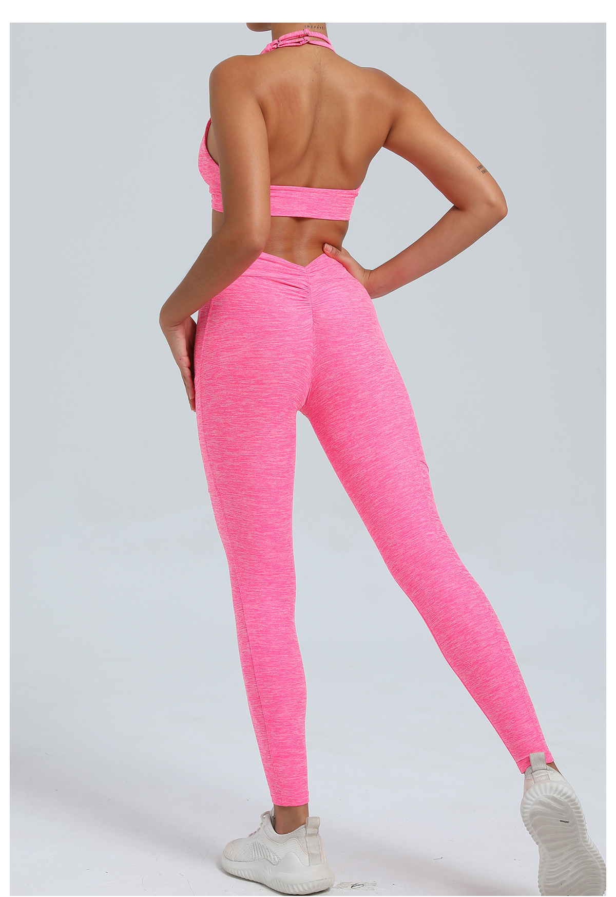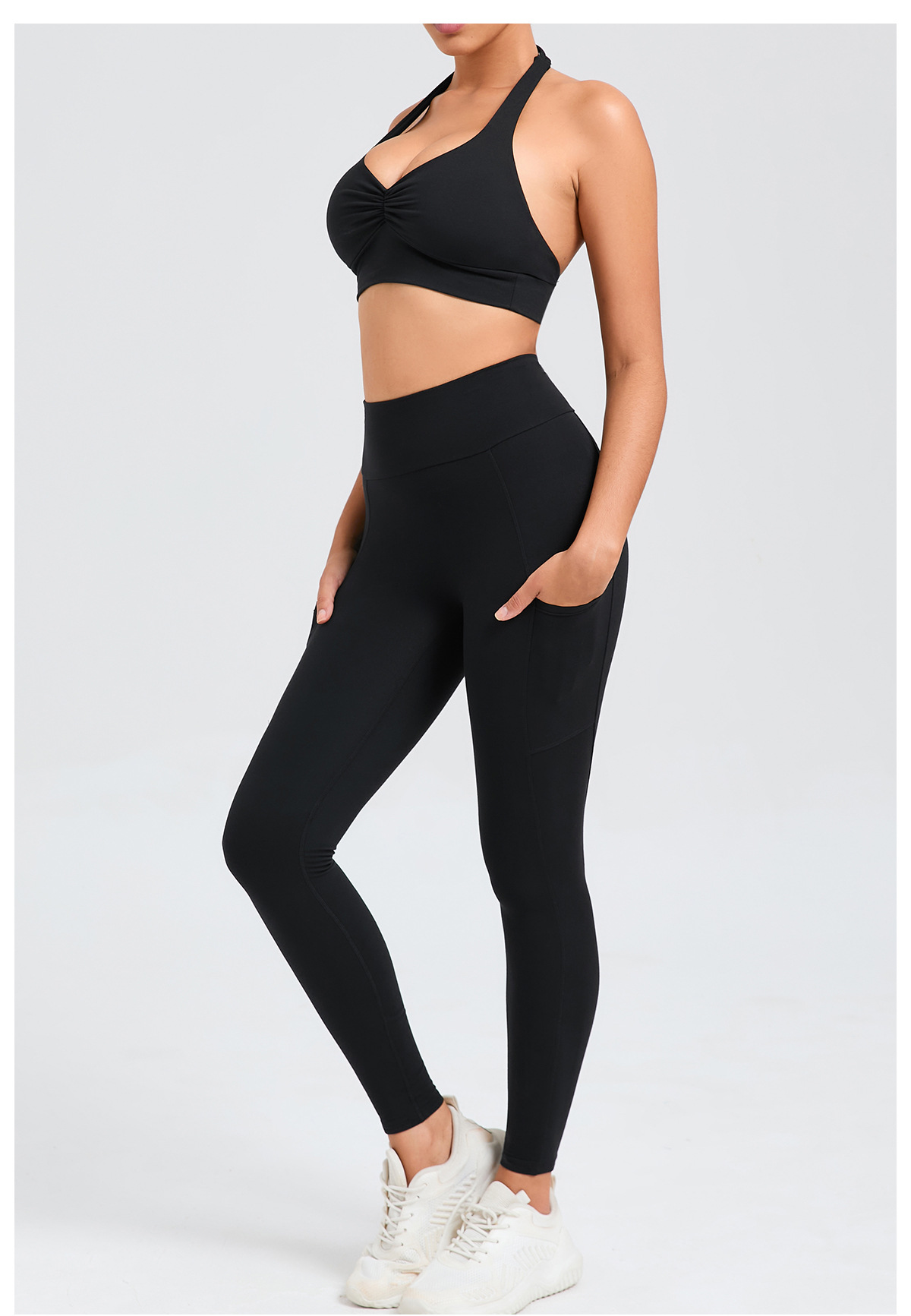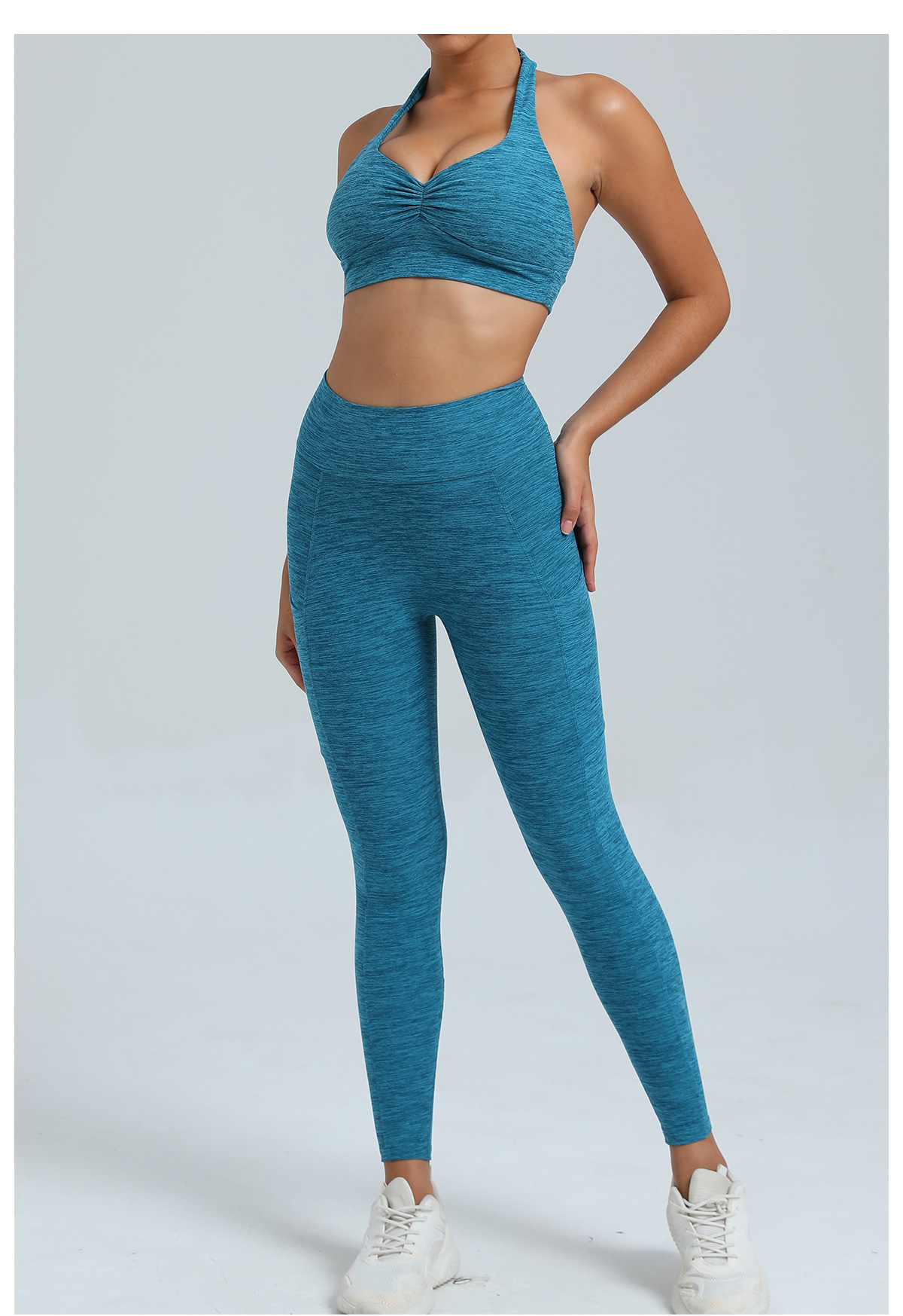 クリアランスセール、返品・交換不可、ヨーロッパ風ホルターネック、調節可能な肩紐、桃尻効果、タイトフィットパンツ、ヨガ・フィットネス・スポーツウェアセット