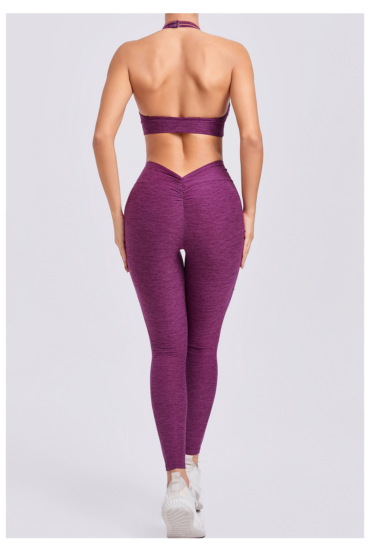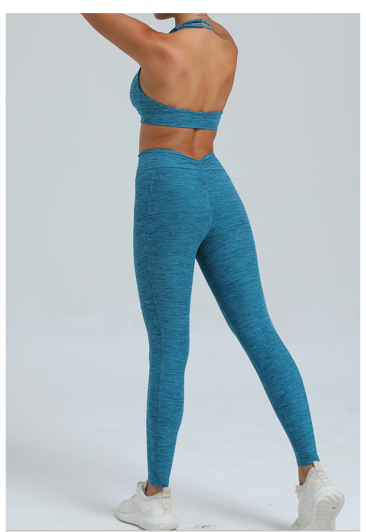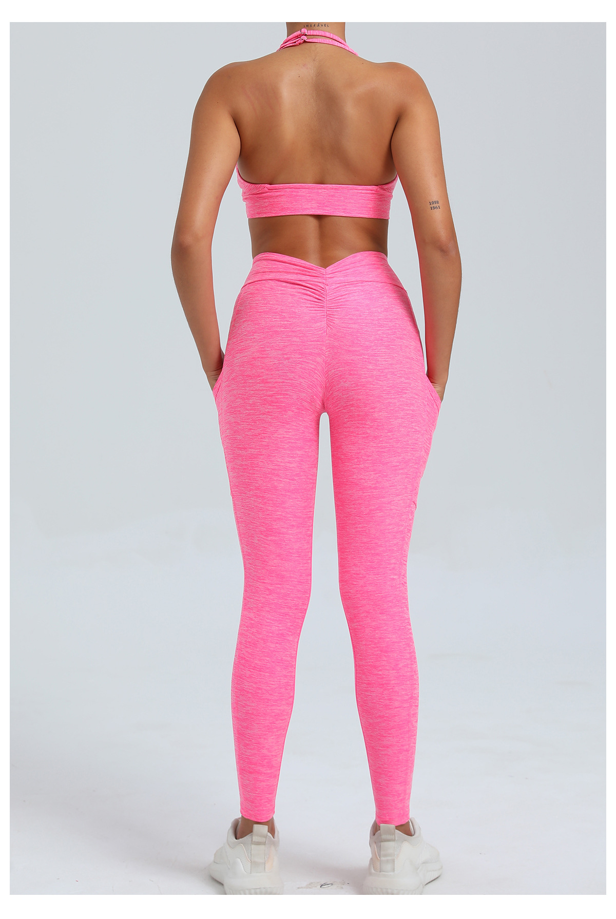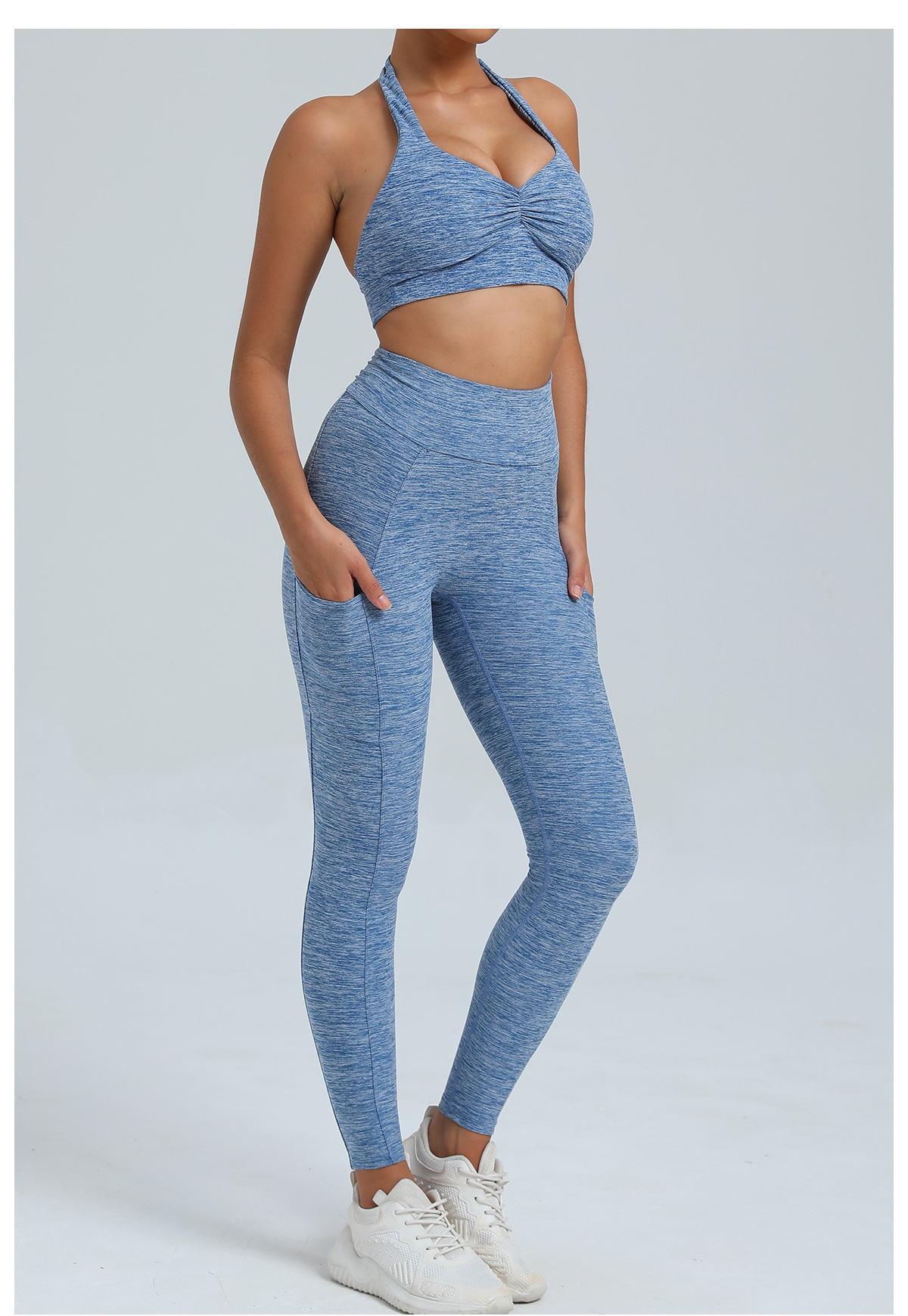 クリアランスセール、返品・交換不可、ヨーロッパ風ホルターネック、調節可能な肩紐、桃尻効果、タイトフィットパンツ、ヨガ・フィットネス・スポーツウェアセット