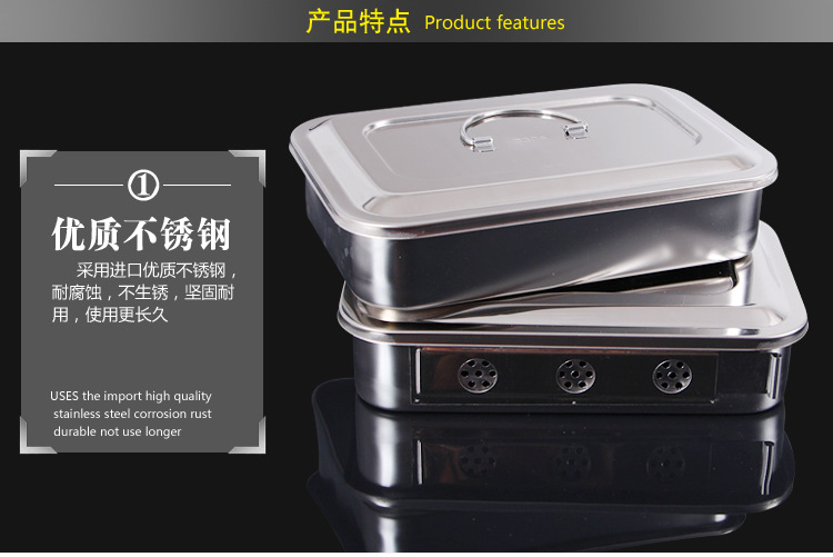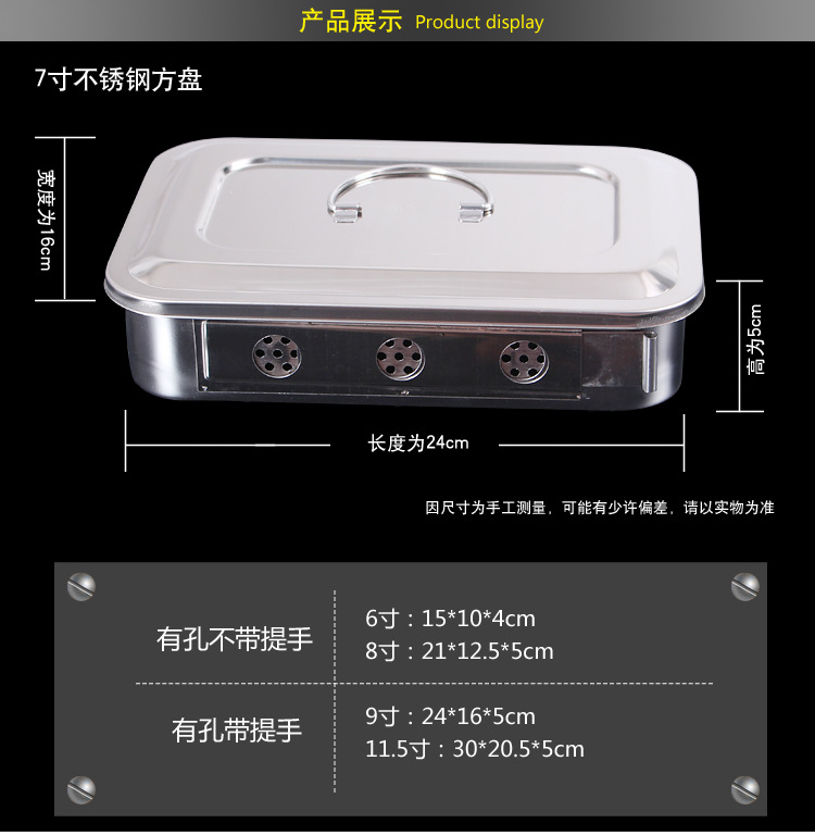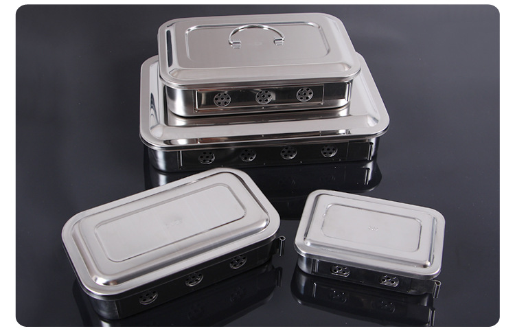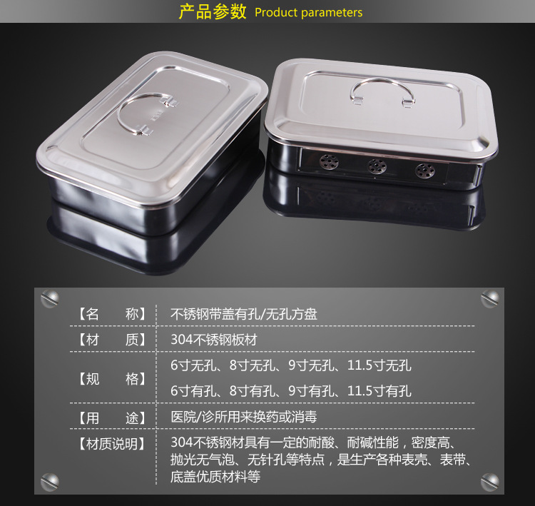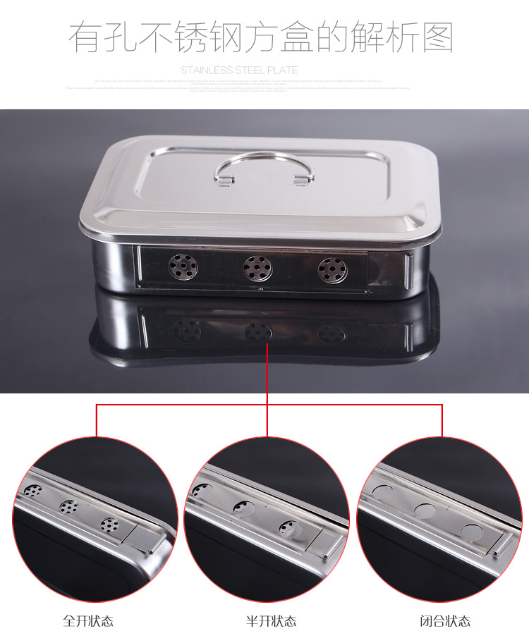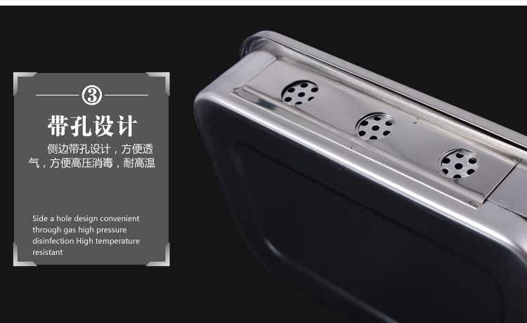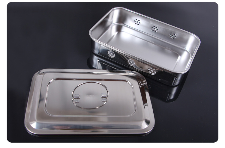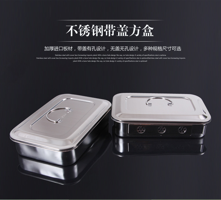 医療用ステンレス消毒盤器械盤穴付き蓋付き角皿高温消毒器器械箱紋刺繍トレイ