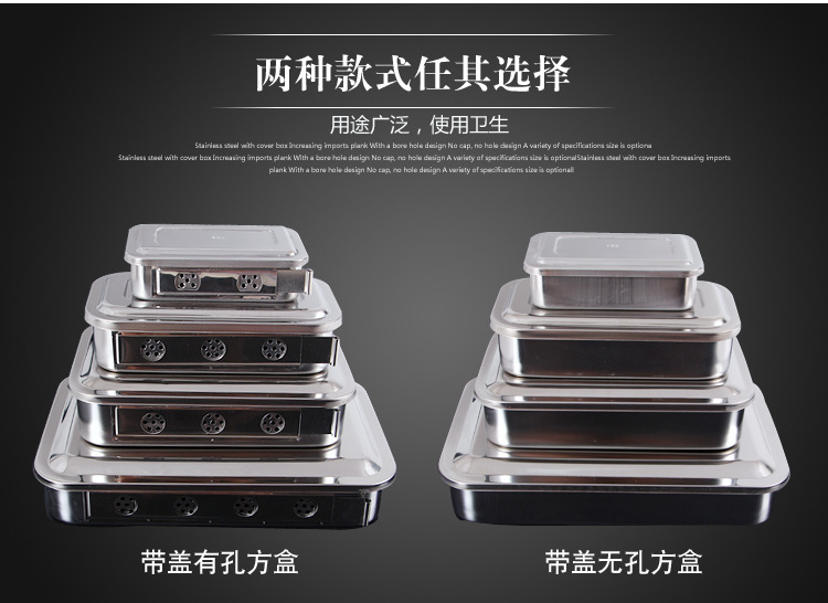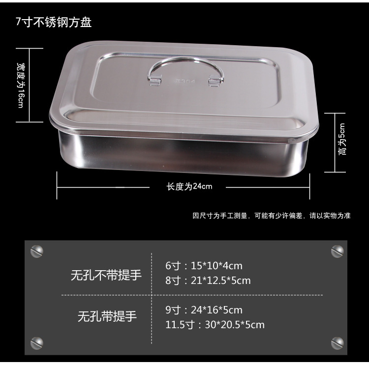 ステンレス消毒箱蓋付き厚さ304穴なし角皿交換薬盤工具箱貯蔵箱分注箱