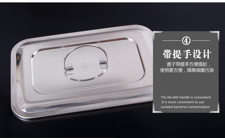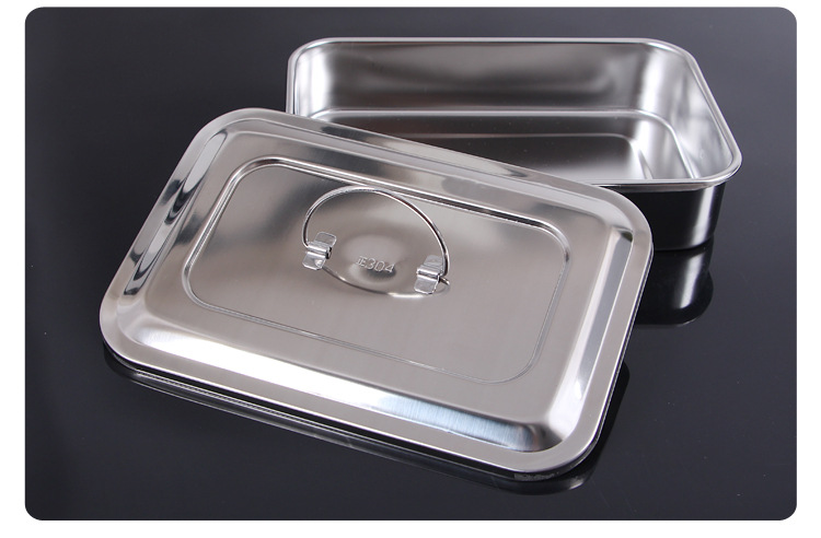 304ステンレス消毒ケース蓋付き角皿消毒角皿手術トレー器具盤消毒盤