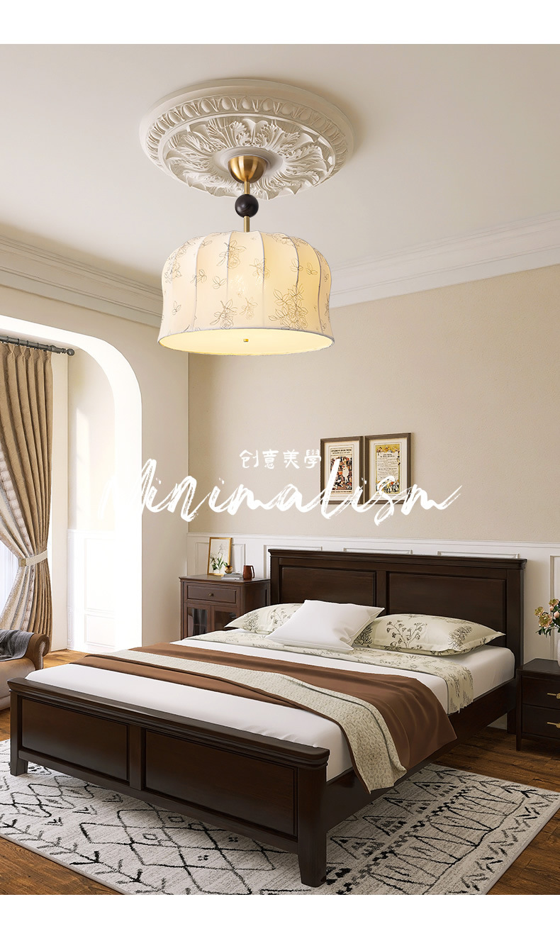 新中国式の木のレトロな寝室の明かりは明かりを吸い込みます。