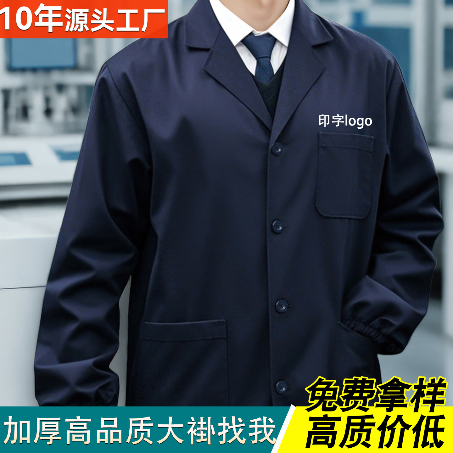 高品质蓝大褂工作服男定制长款防尘耐磨车间物流搬运干活劳保罩衣