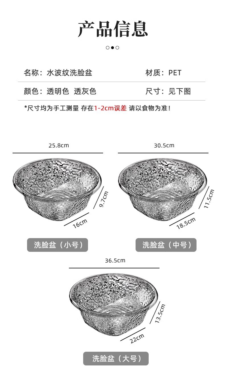 軽豪華高颜値水波紋厚透明洗面器家庭用プラスチック洗面器寮洗濯洗面器
