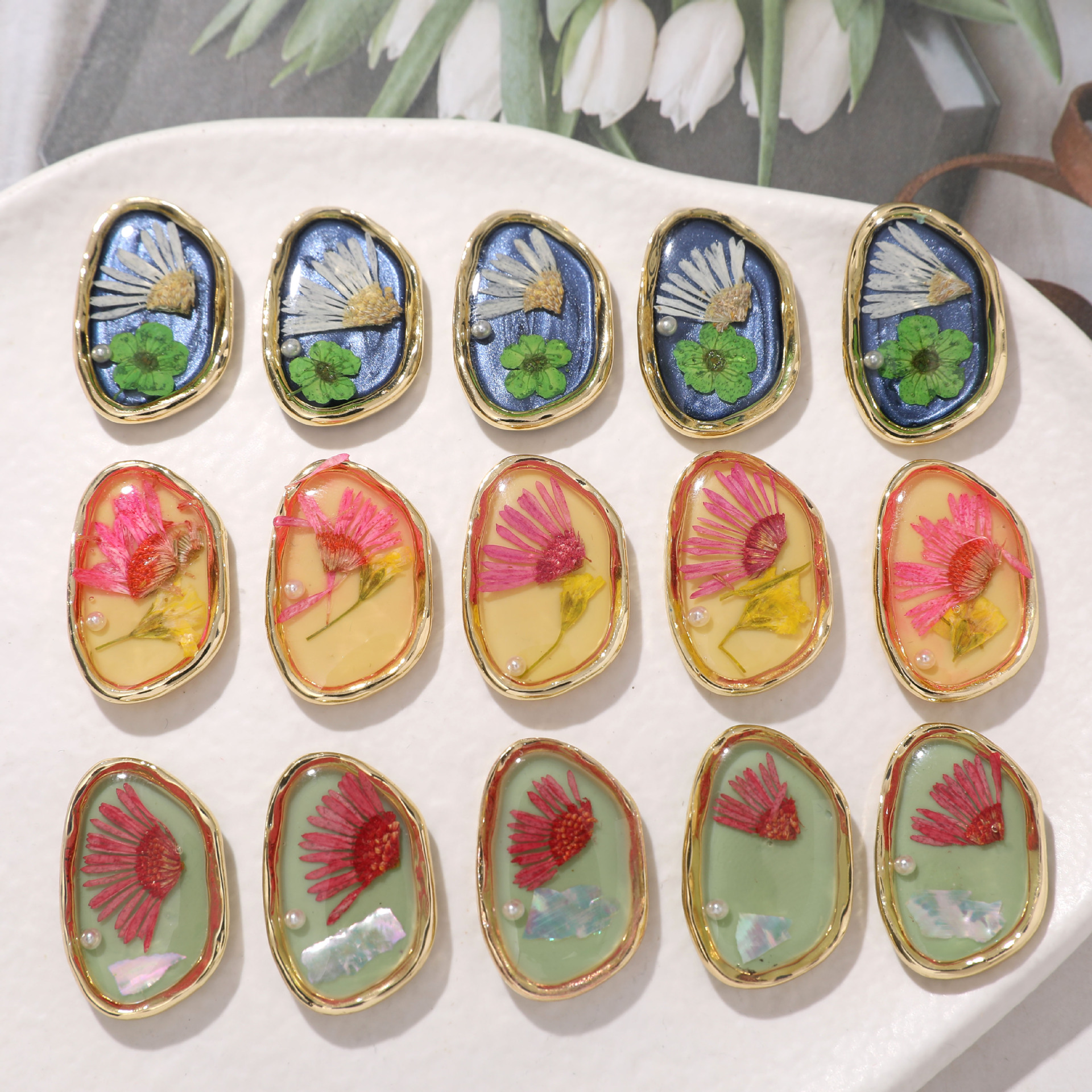材质:合金+滴胶干花