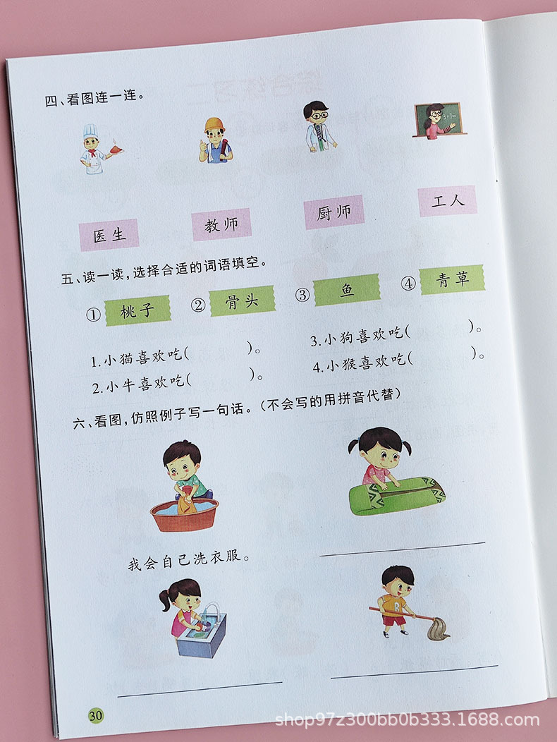 幼い頃は学校前のクラスの冬休みの宿題を連絡して入学して練習帳の言語の数学のピンインの練習帳を準備します。