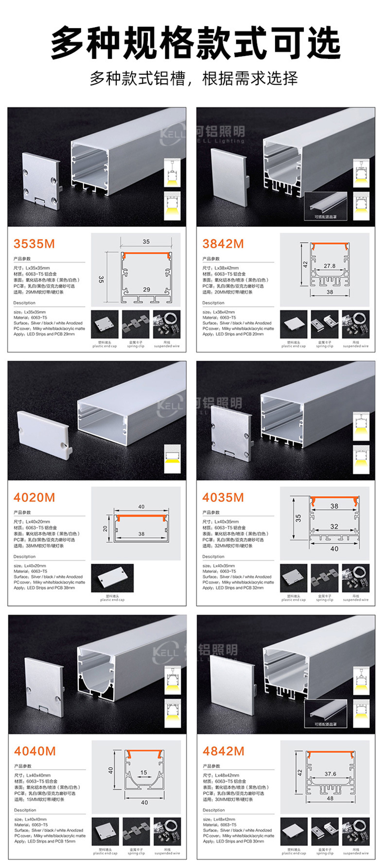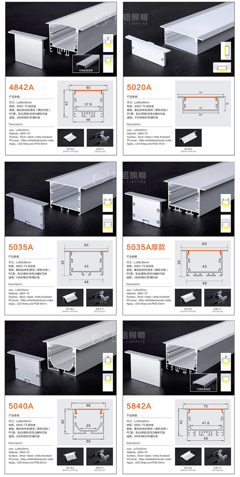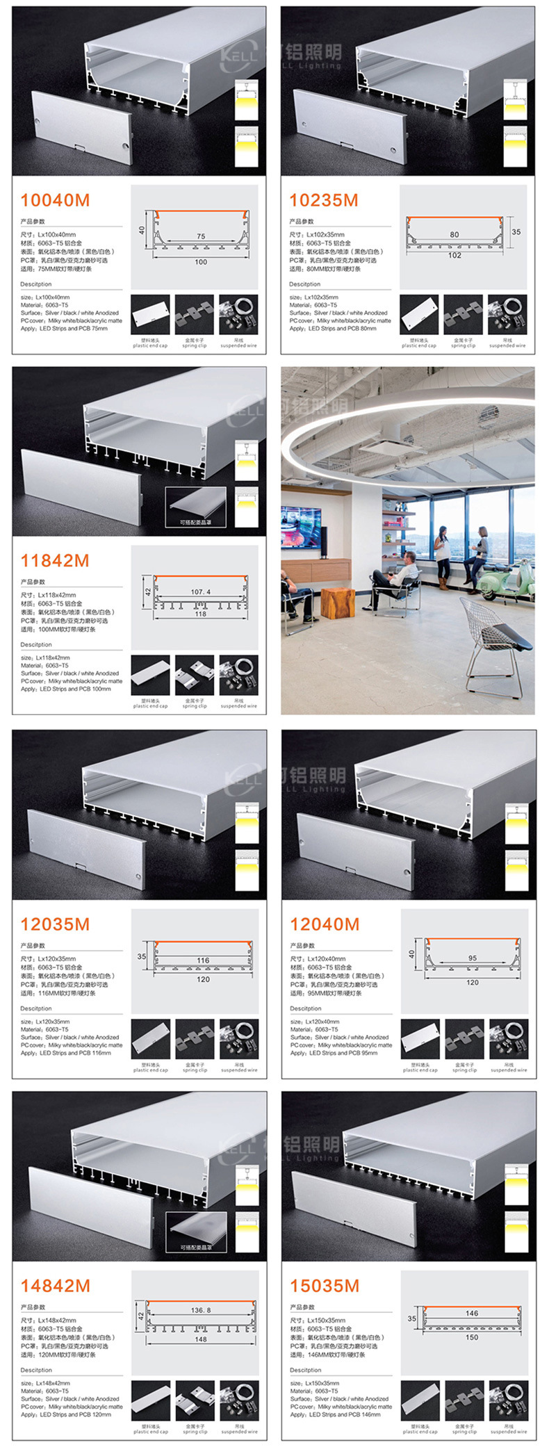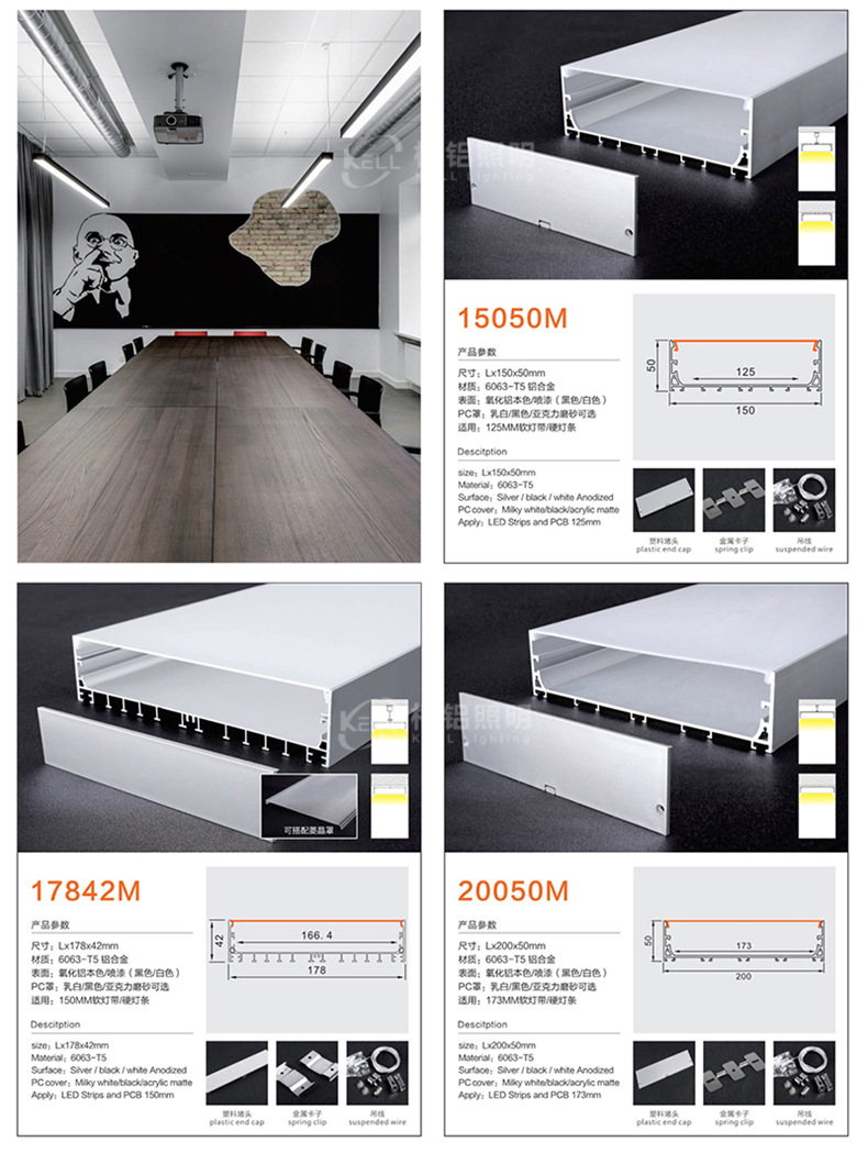 LED明装暗装吊線灯外殻アルミ溝オフィス灯外殻線灯セット単層二重u型アルミ