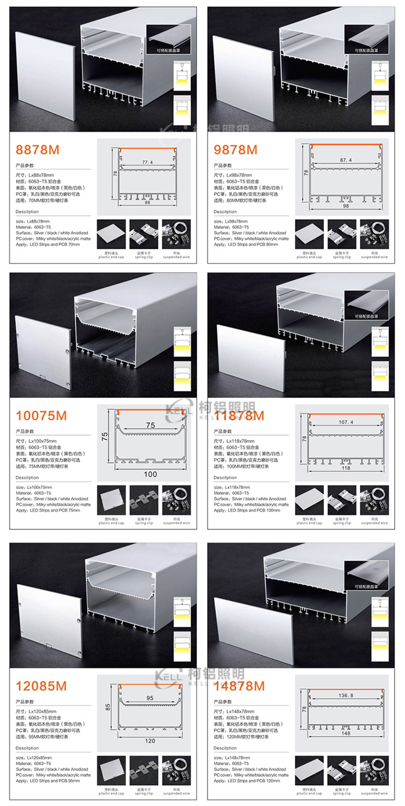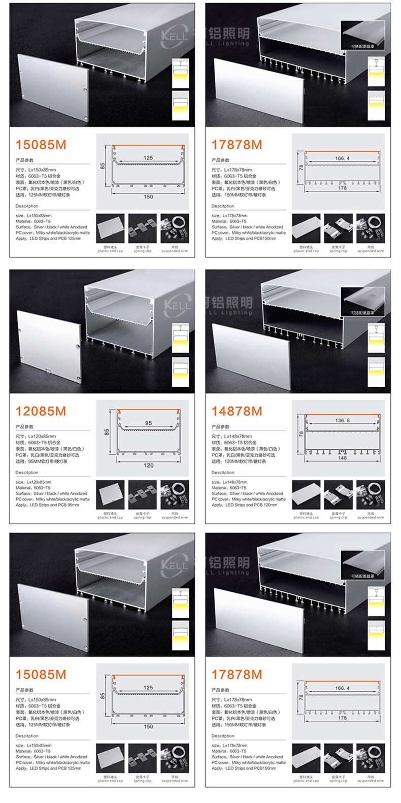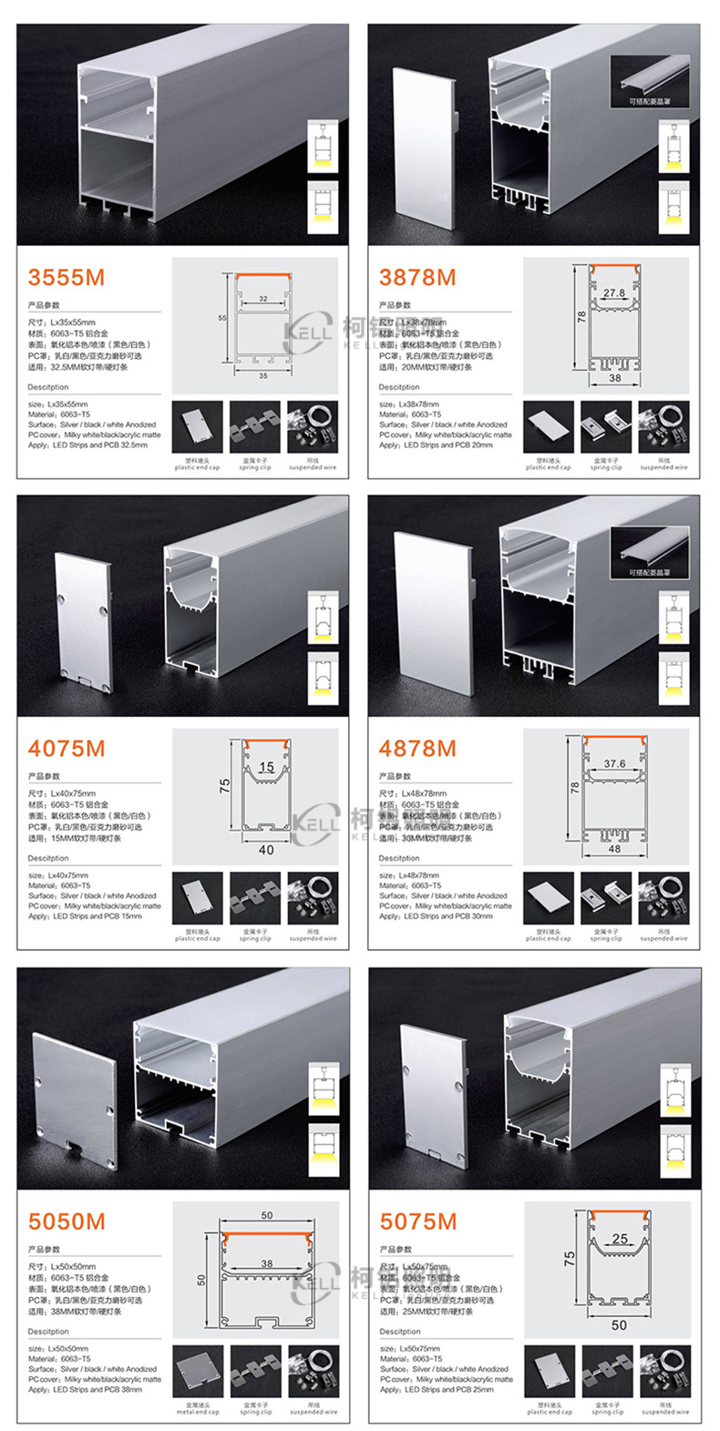 LED明装暗装吊線灯外殻アルミ溝オフィス灯外殻線灯セット単層二重u型アルミ