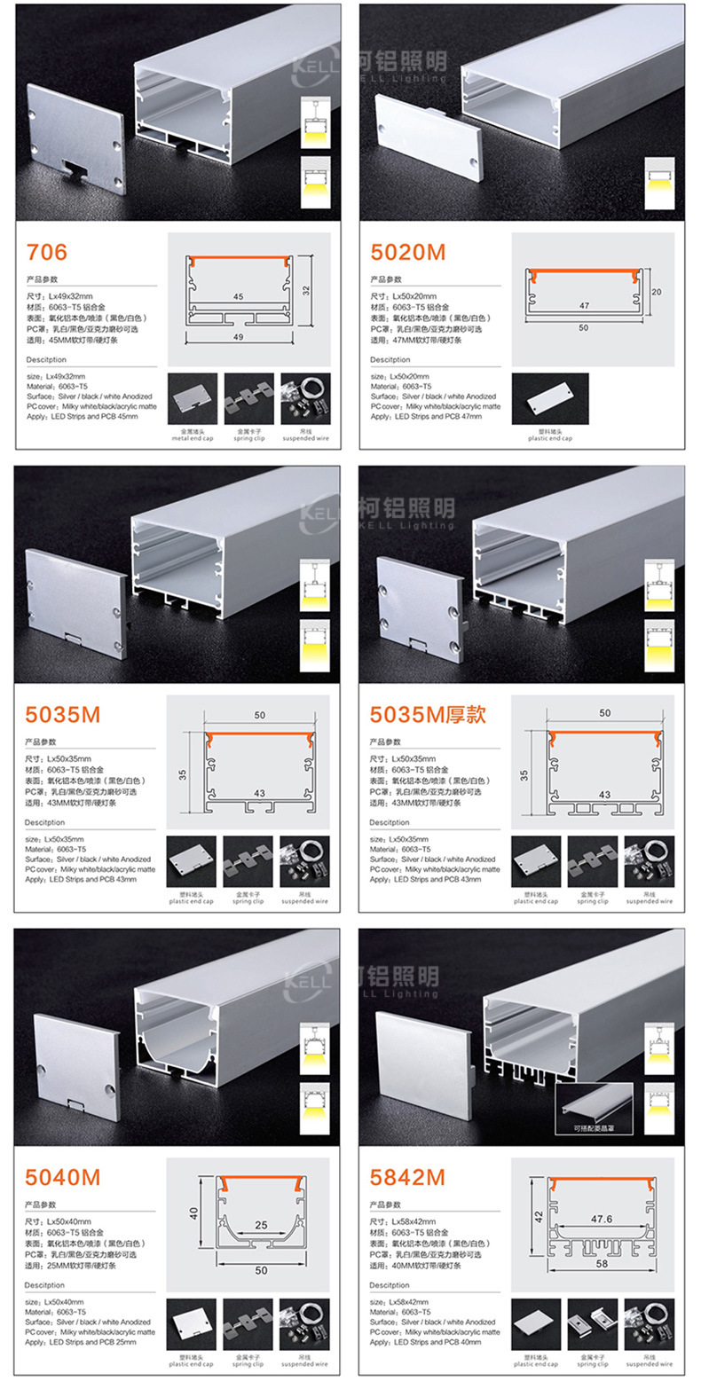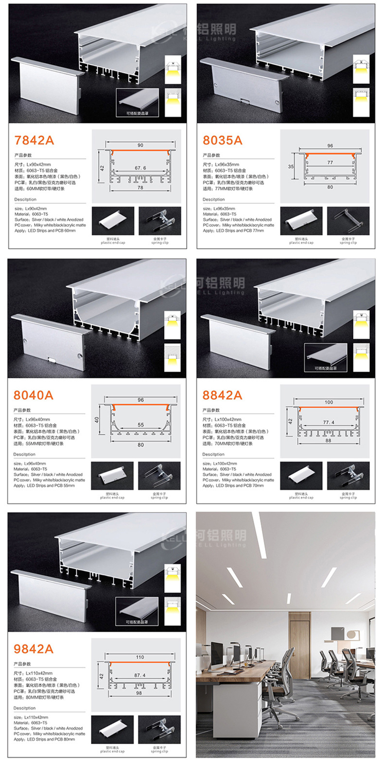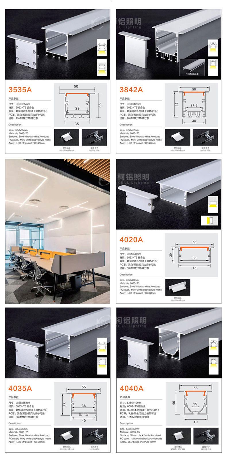 Ledオフィスライト外殻線灯溝5センチ幅二重オフィスライトアルミ形材5075