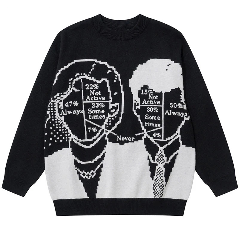 新クロスボーダー欧米メンズニットy 2kレトロなしわの渦巻線のプリント女性のゆるい穴のセーター