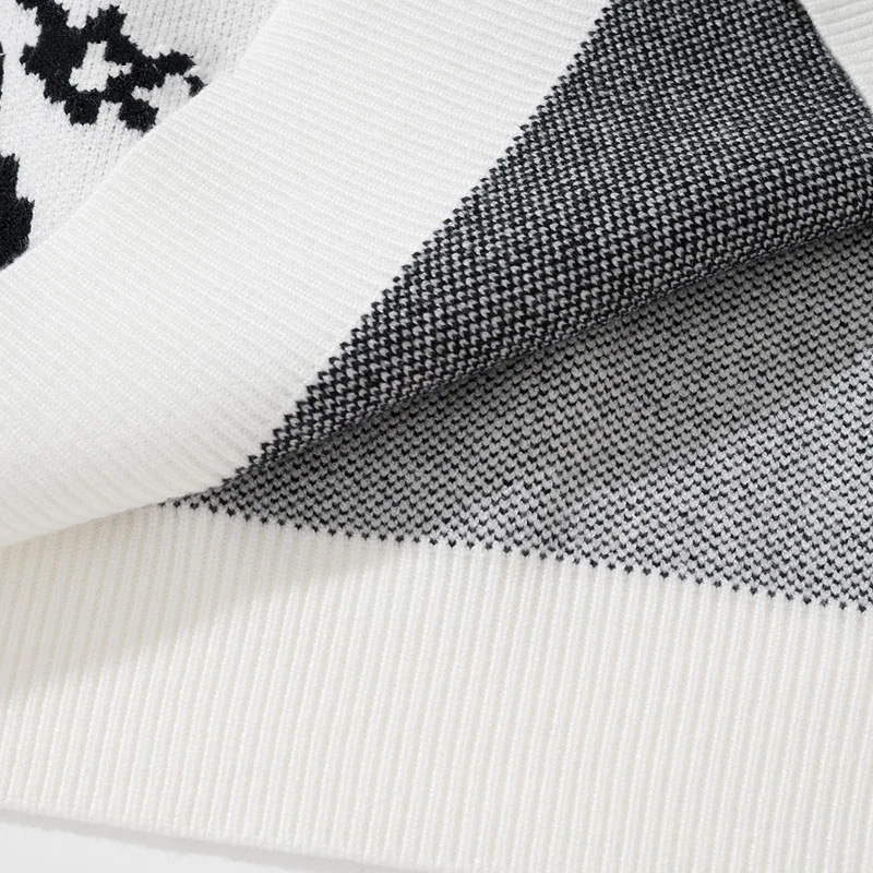秋冬の新型レトロな人は街頭のゆるい大きいサイズの婦人服のジャカードのニットの欧米の街頭のファッションの男性のセーターのようです。