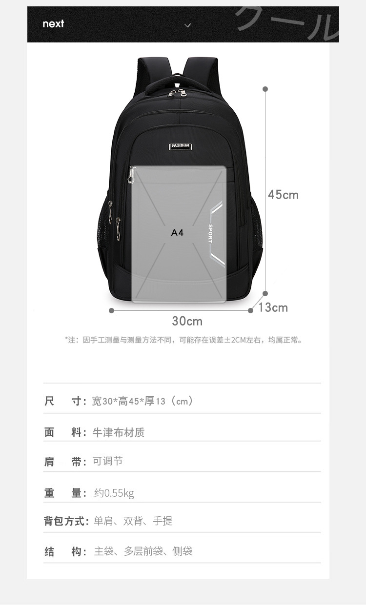 新型バッグ大容量リュックサックパソコンリュックサック中学生カバン男軽ビジネス通勤リュックサック