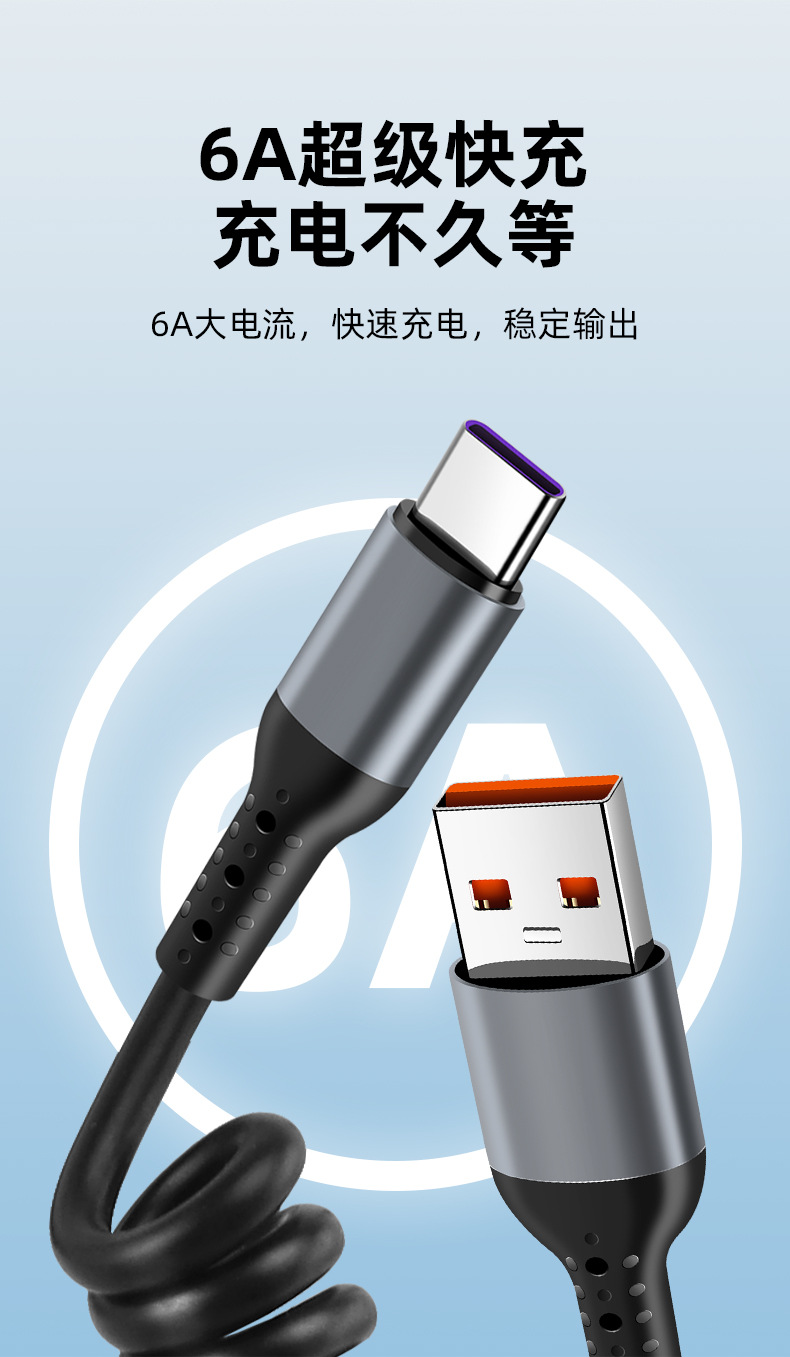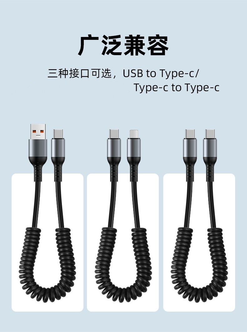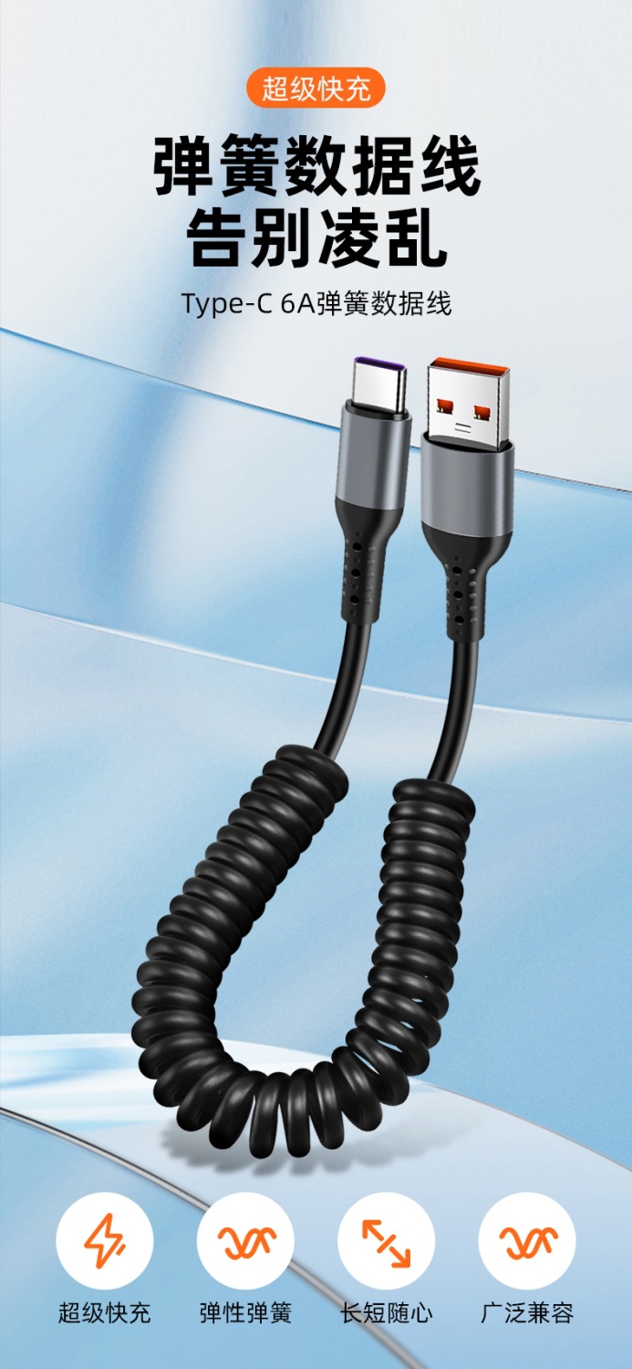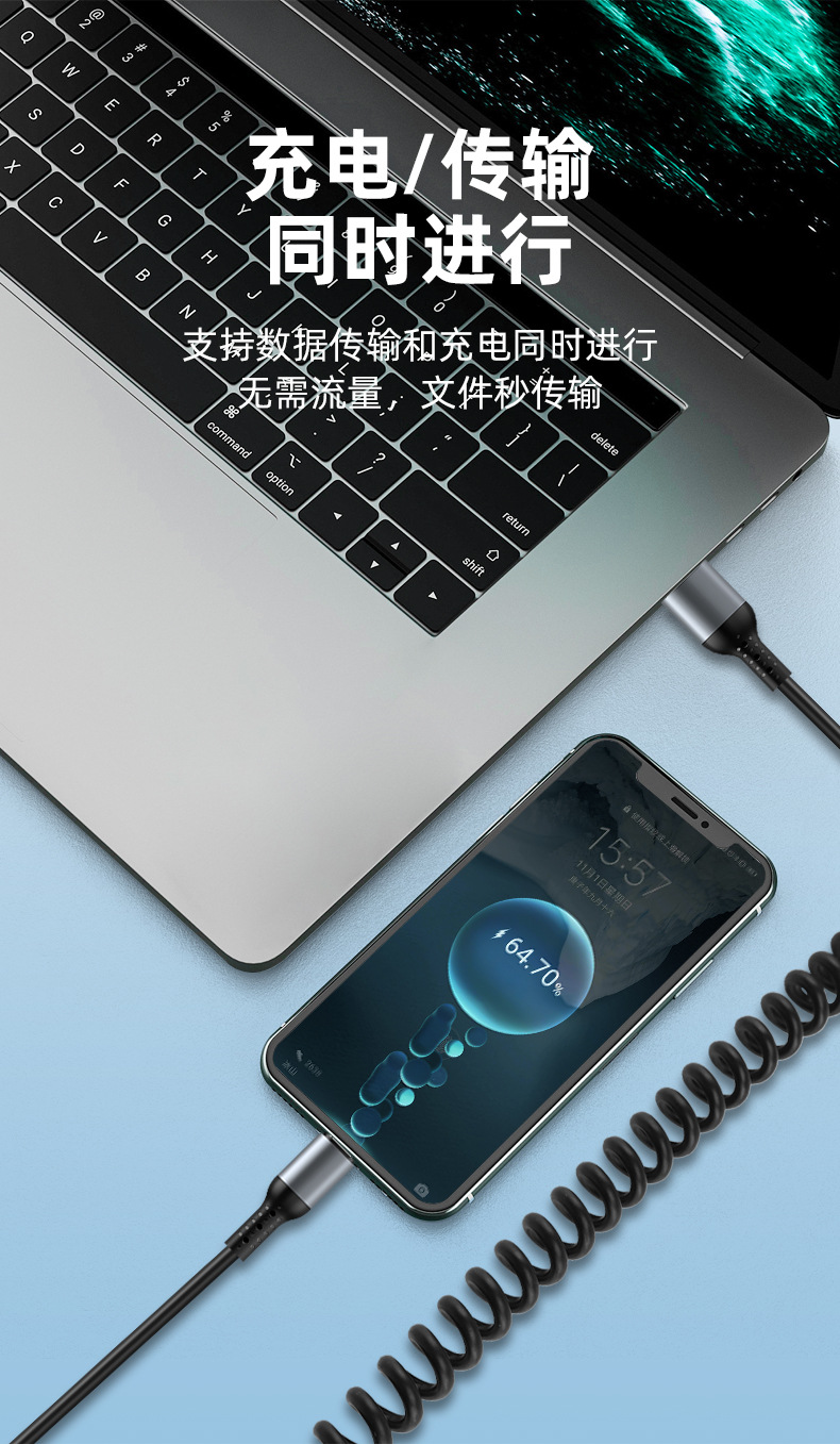 66wスプリング伸縮データケーブルはアップル15携帯電話充電ケーブルtypec6 a超速充車載収納を適用する