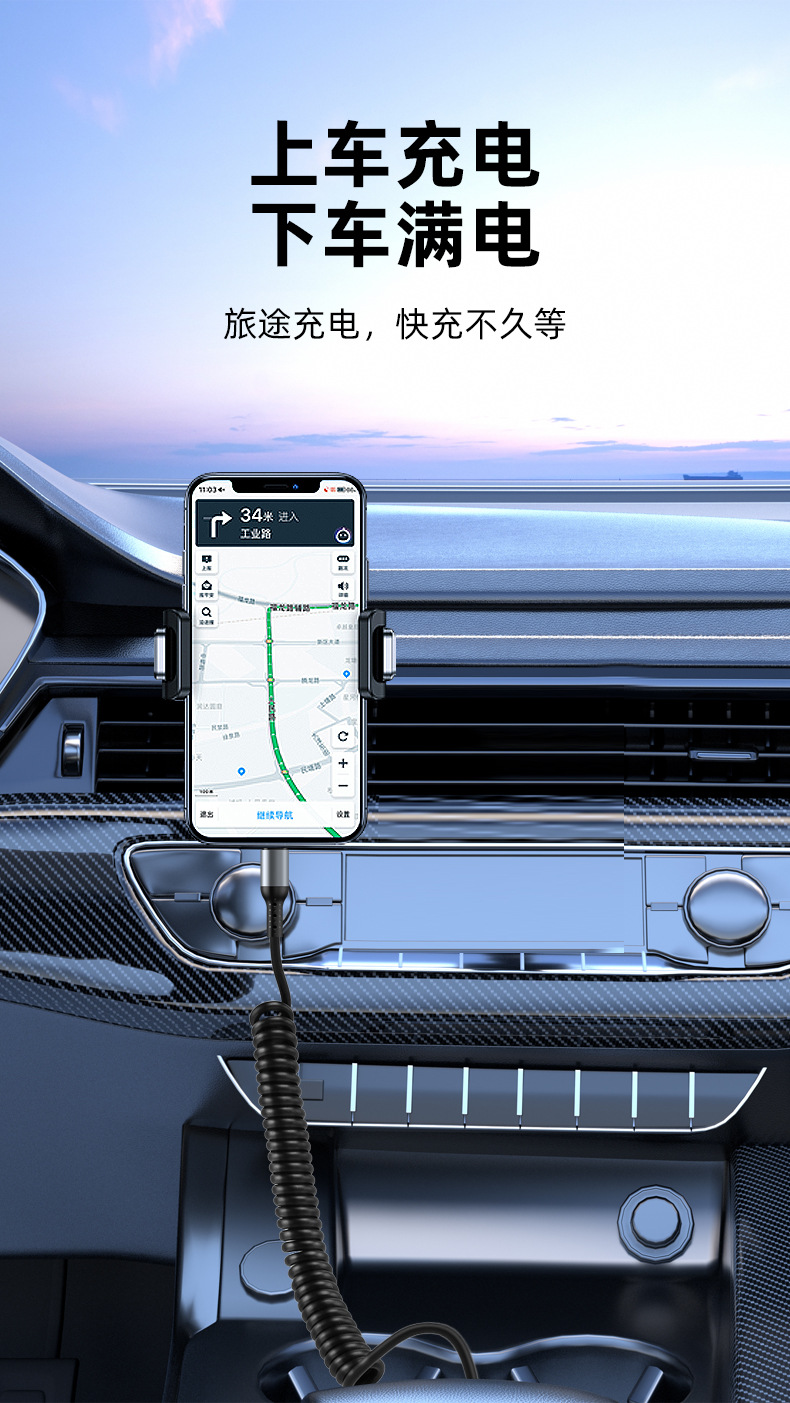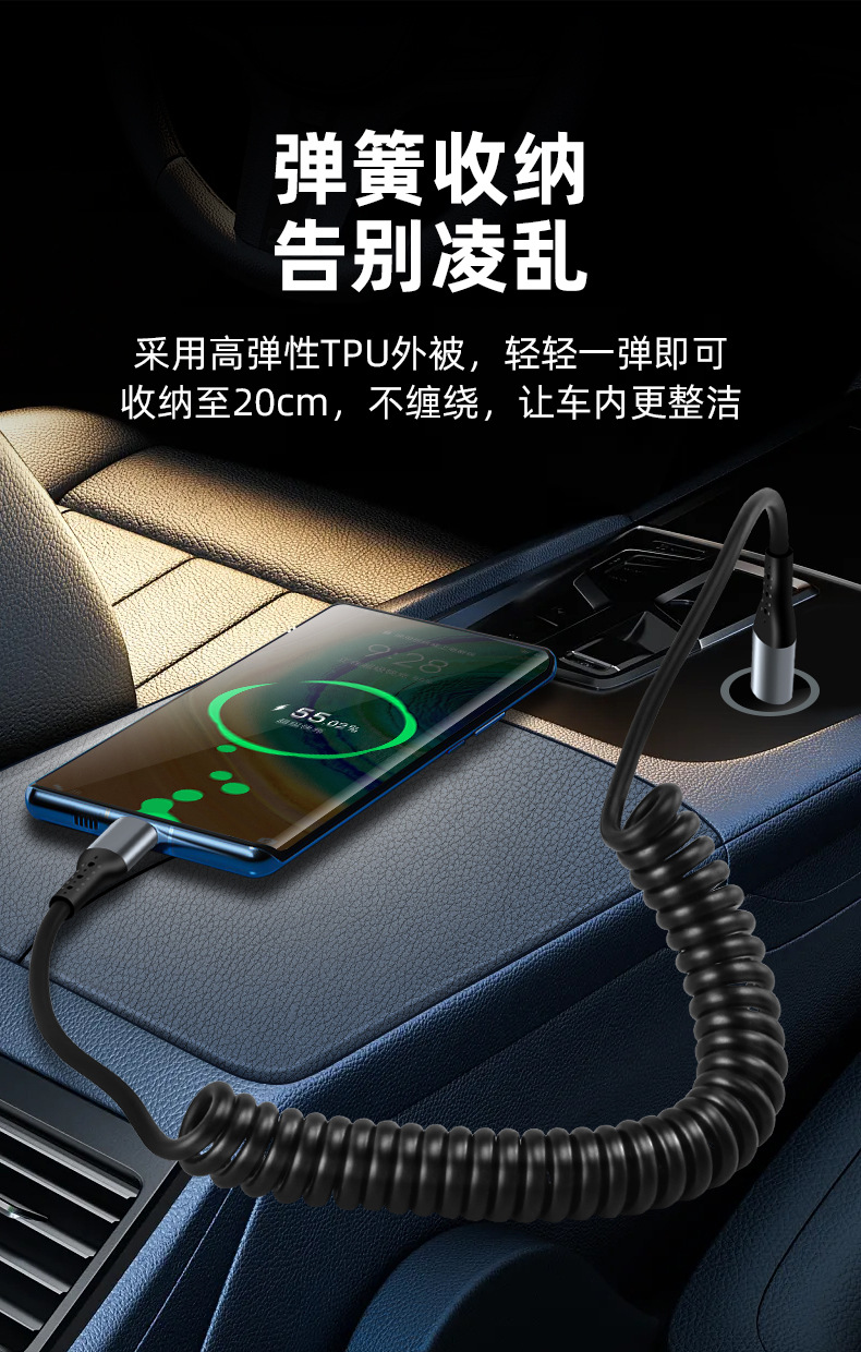 車載充電線一引き二バネデータ線二合一超速充自動車専用携帯電話収納線