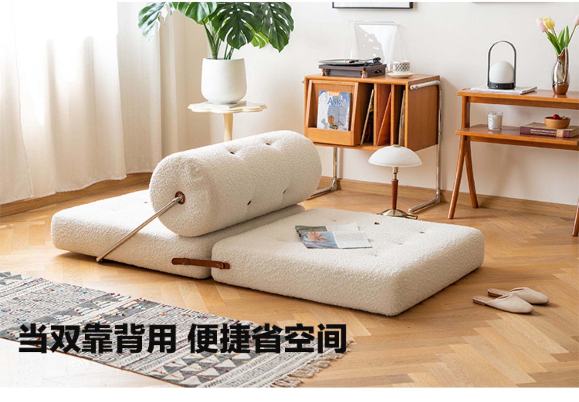 布製ソファ、抖音、小紅書、小スペース向けソファ、賃貸住宅、ベルベット、クリーム系、リビングルームソファ