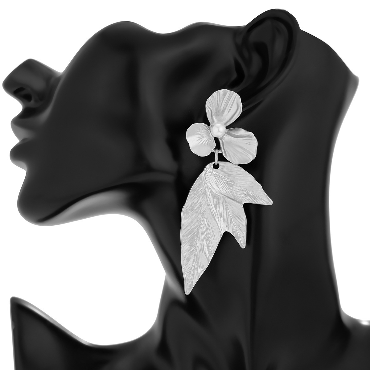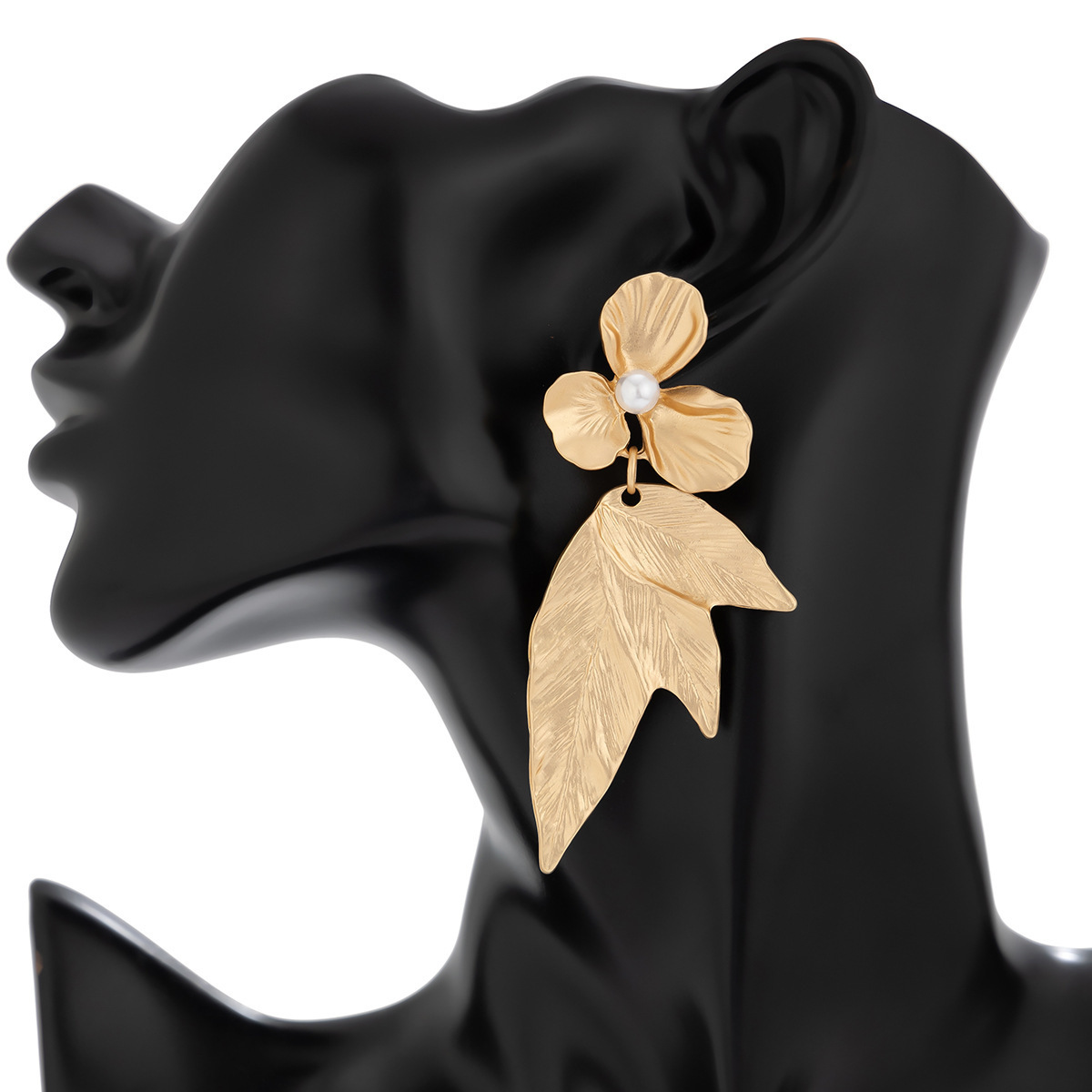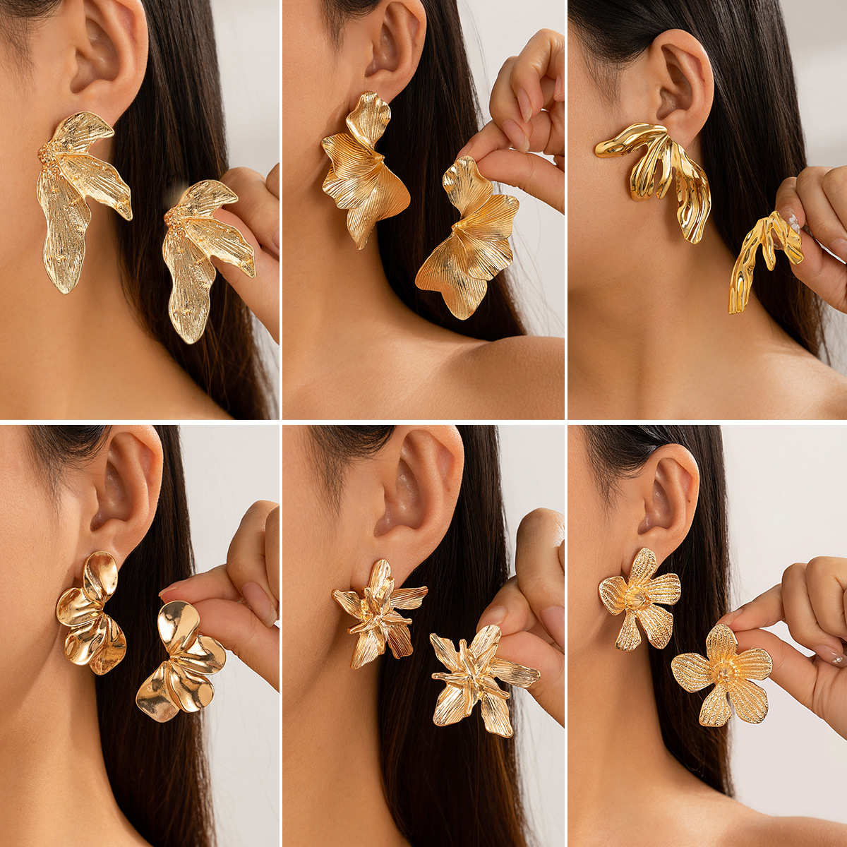 欧米風クロスボーダーアクセサリー レトロでミニマルな葉っぱ型イヤリング おしゃれなデザインのメタルフラワーイヤリング