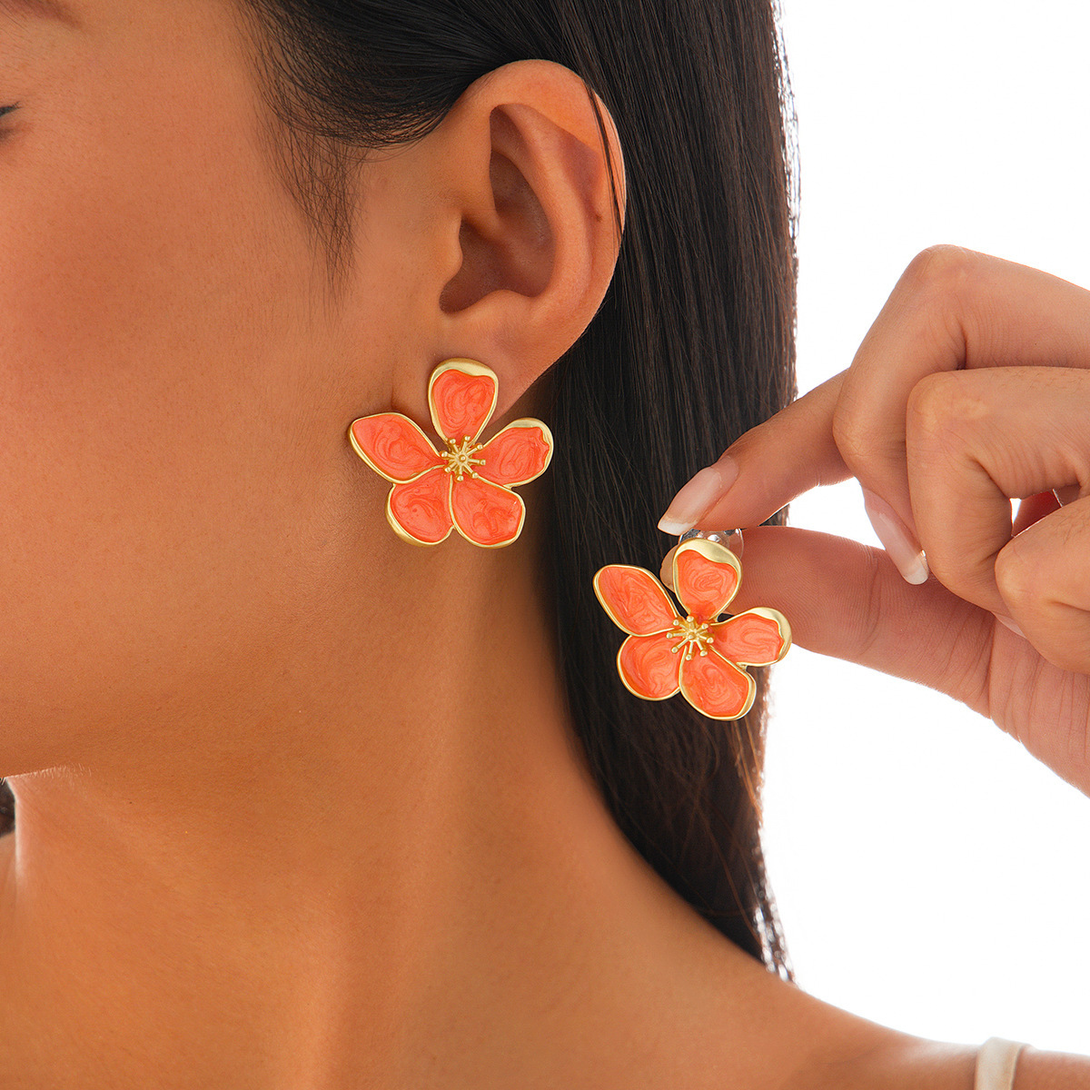 欧美跨境饰品 夸张亚克力红色立体大花朵耳钉 甜美风度假花瓣耳饰