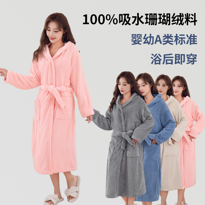 バスローブ厚いコーラルベルベット吸水性男女家庭用大人モデルホテル浴衣美容院バスローブクロスボーダー卸売