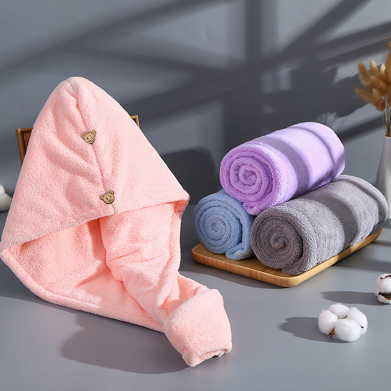 サンゴの毛のバスタオルの新型の厚い家庭用の大きいサイズの成人のビーチタオルのキャンデーのタオルの乾いた髪の帽子のセット