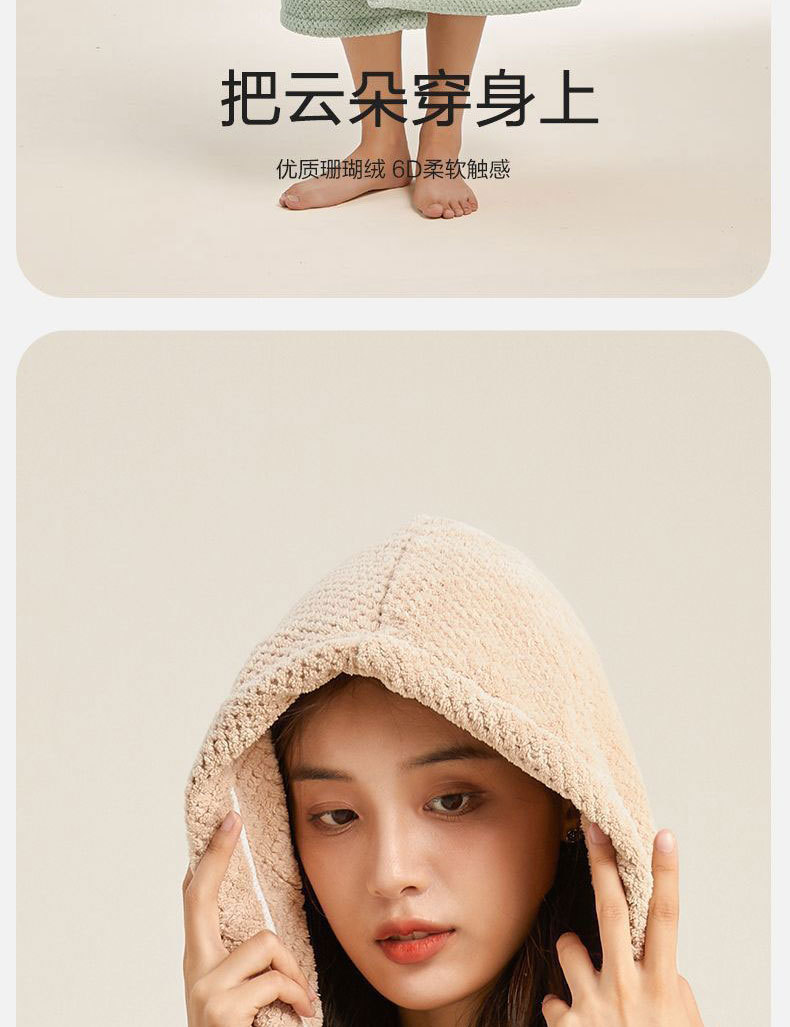 サンゴの毛の浴衣の女性の冬は帽子を持っています。大人は柔らかくて吸水します。