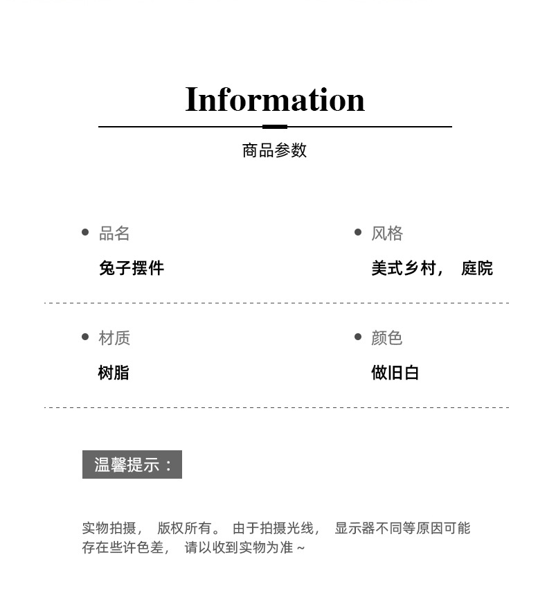 跨境仿真兔子花园摆件户外园林树脂工艺品家居装饰品客厅庭院景观