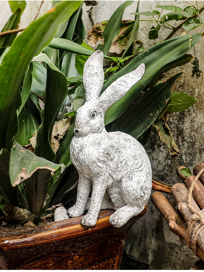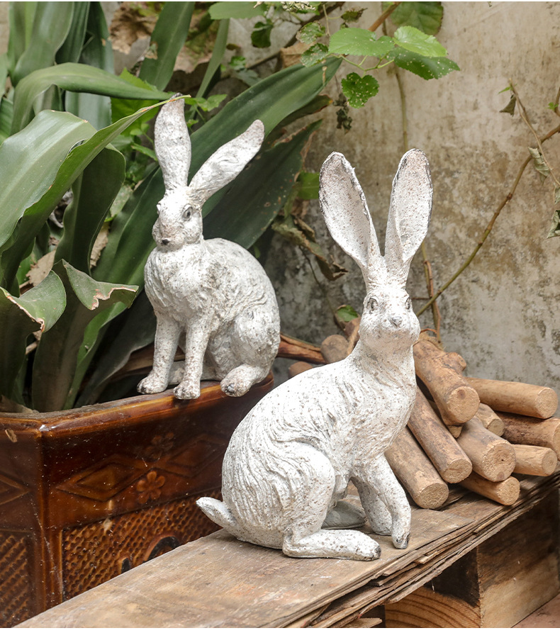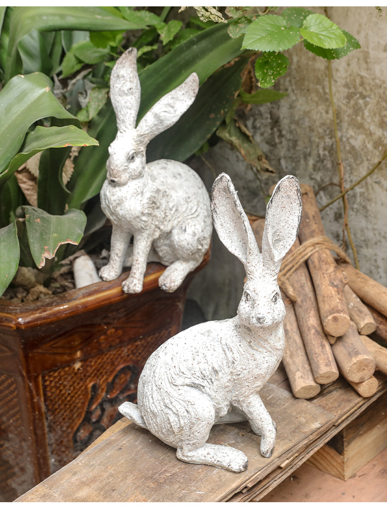 ヨーロッパのレトロな古いウサギ樹脂クラフト彫刻動物装飾品バルコニーシリーズフォレスト装飾新築祝いギフト