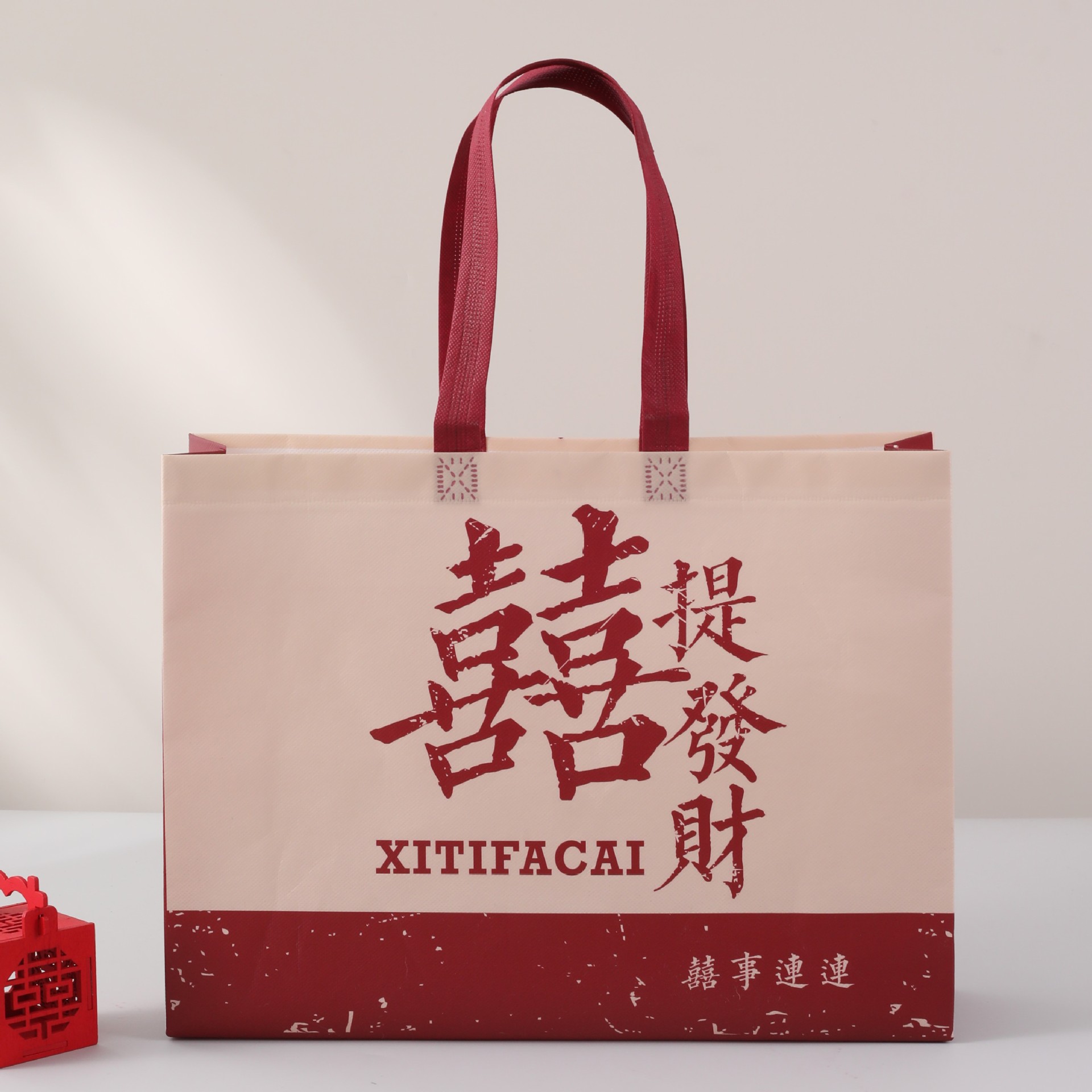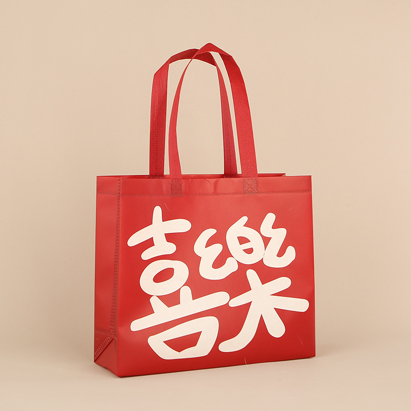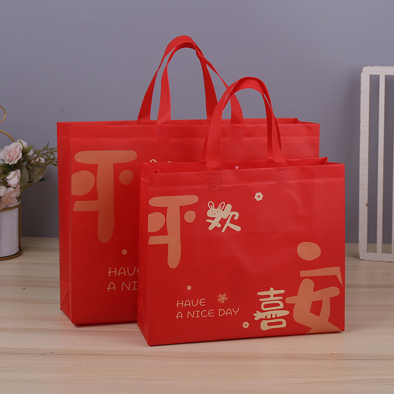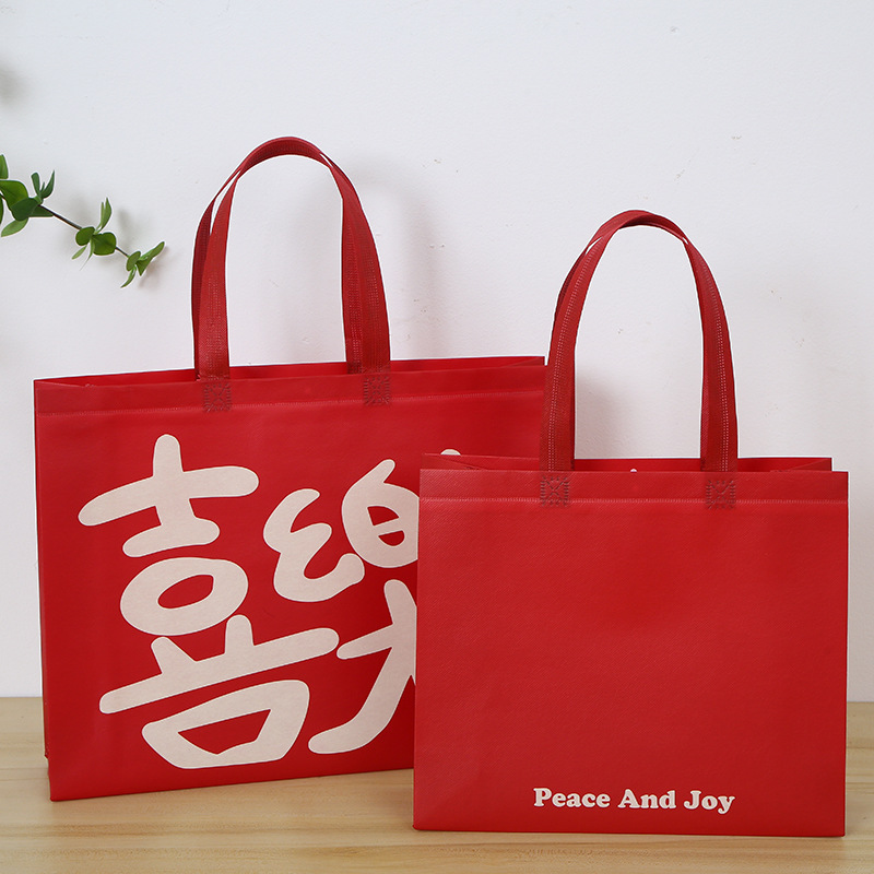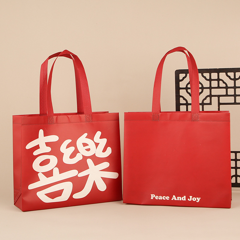 不織布覇膜手提げ袋赤色プレゼント祝日プレゼント旧正月新年結婚式防水手提げ袋プレゼント袋