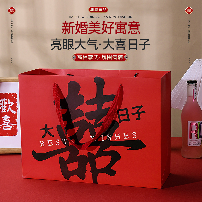 クリエイティブ大紅喜袋ギフトバッグ紙袋レジ袋服装袋包装紙袋手提げ紙袋カスタム