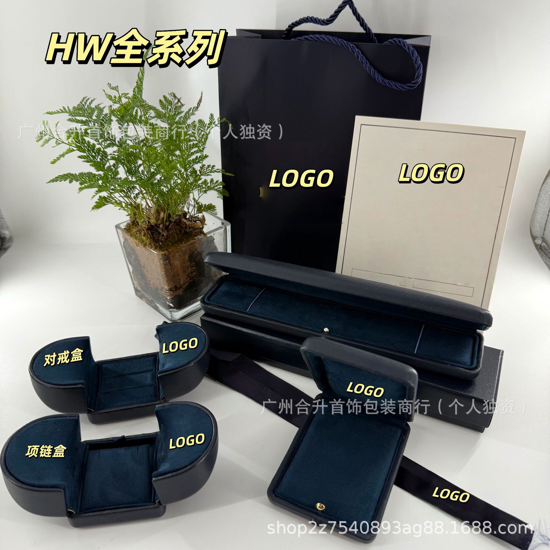 海瑞温斯超纤版 HW 大吊坠首饰手链对戒饰品包装礼品项链收纳盒