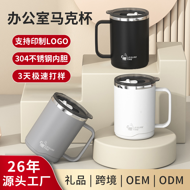 304ステンレスマグカップ二重保温カップサラリーマン水カップシンプルなオフィスカップロゴプレゼントプレゼント