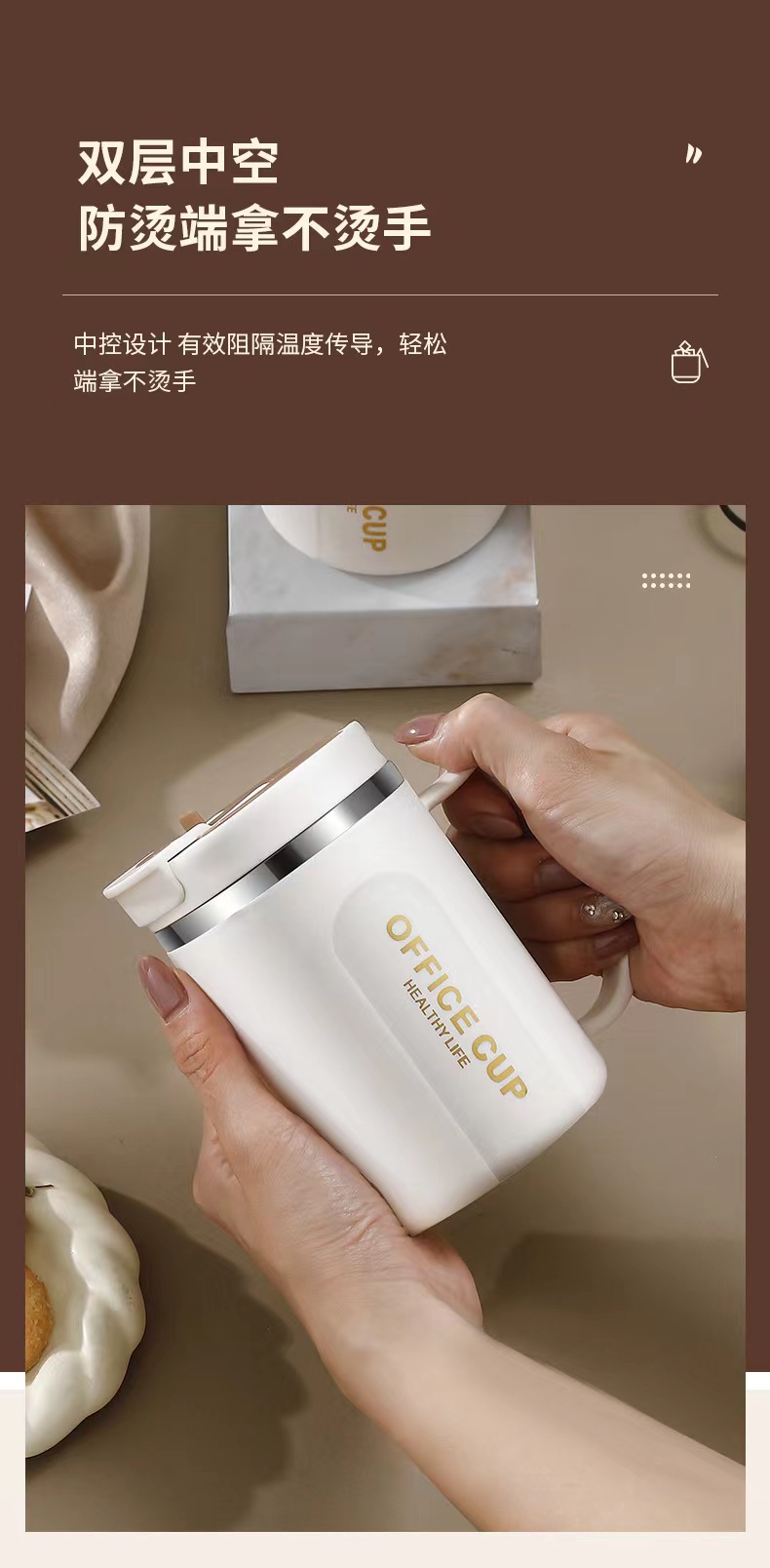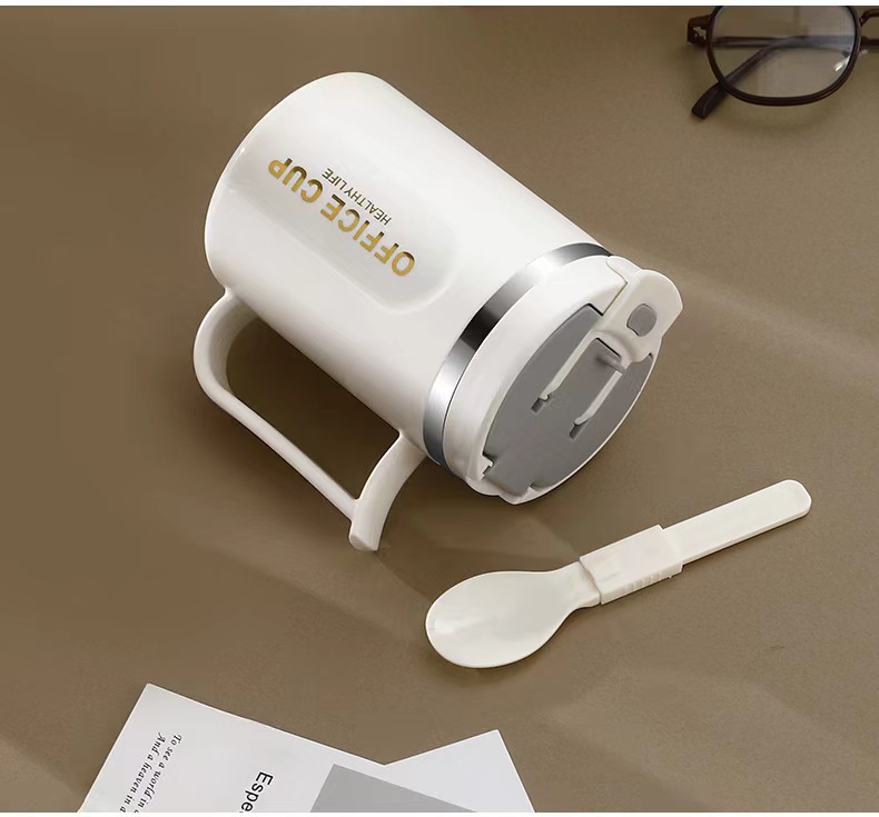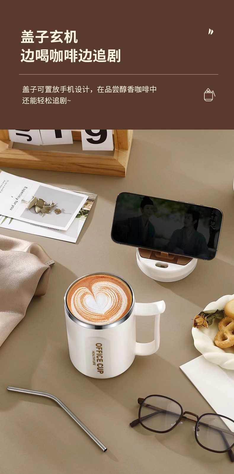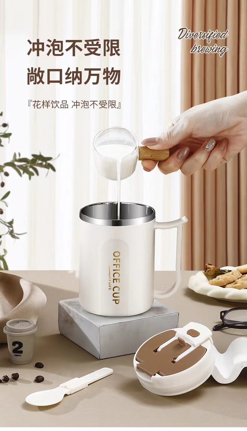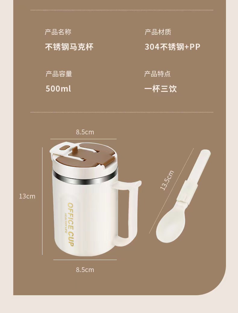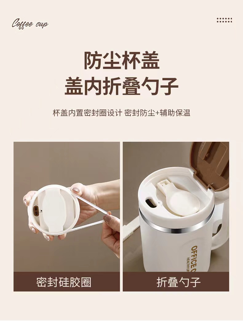 マグカップステンレスins高颜値オフィスコーヒーカップ熱く防止蓋付きスプーン付きカッププレゼントロゴ