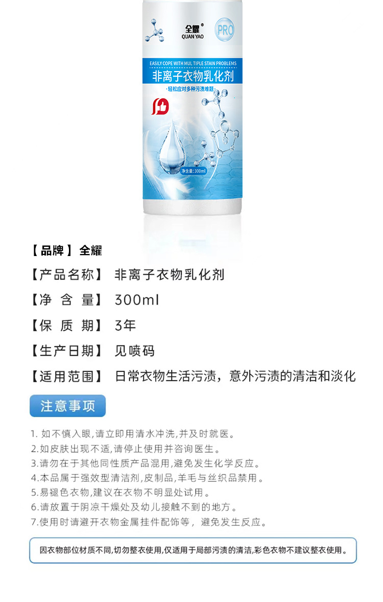 同款非离子衣物乳化剂强力去污渍油渍发黄渗透剂喷雾衣服清洁剂
