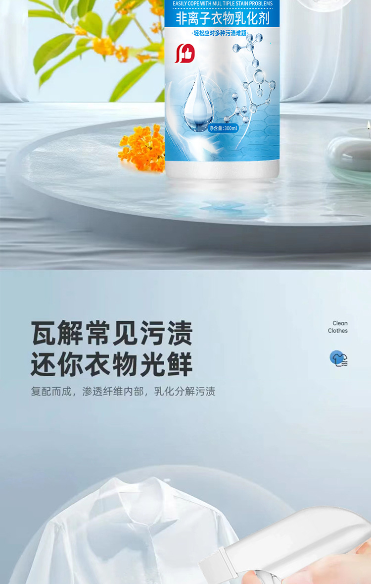 非离子衣物乳化剂洗衣液家用去污去渍祛油渍植护免水洗清洁