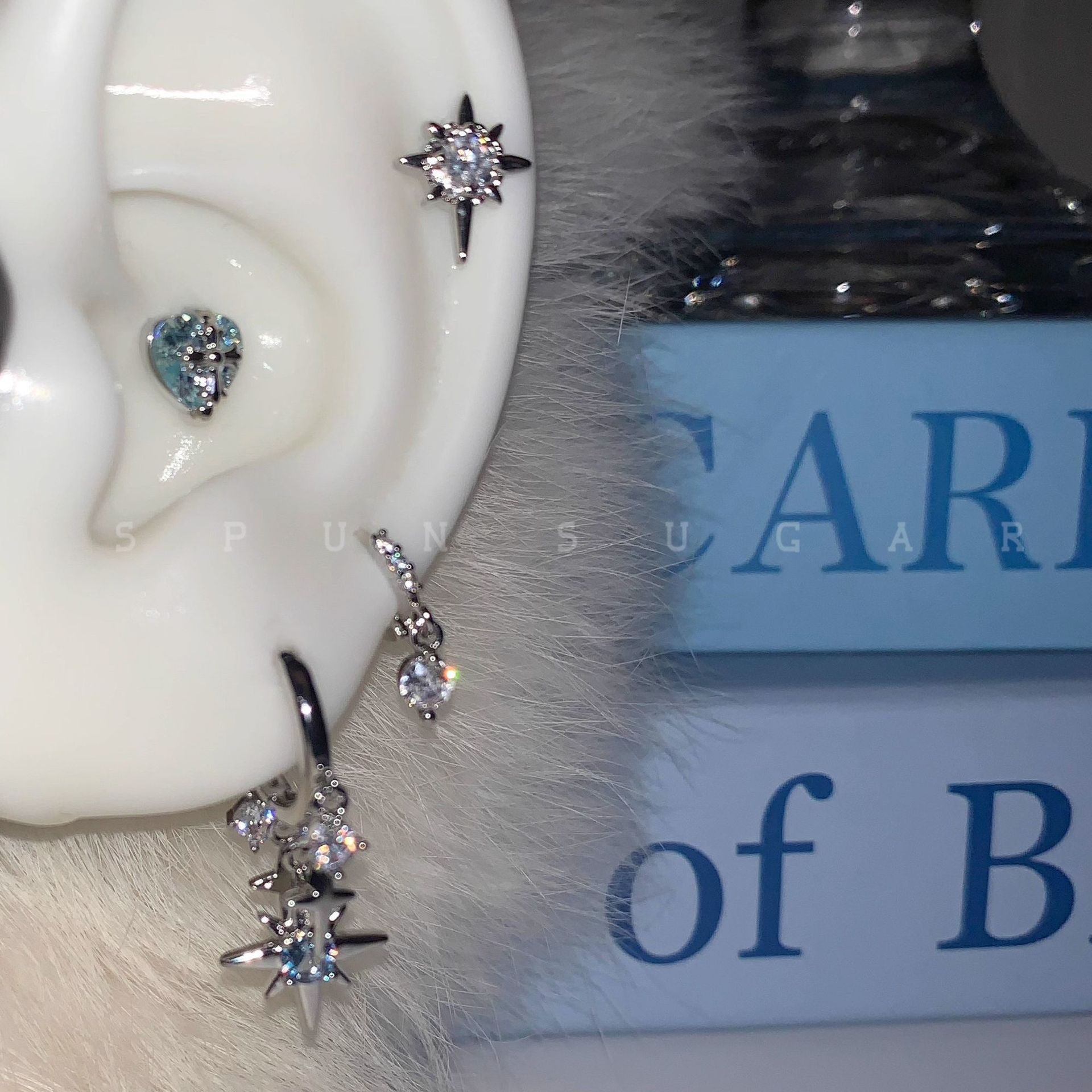 蓝色八星芒流苏耳环耳圈耳扣少女爱心十字架耳骨钉钛钢耳蜗钉耳饰