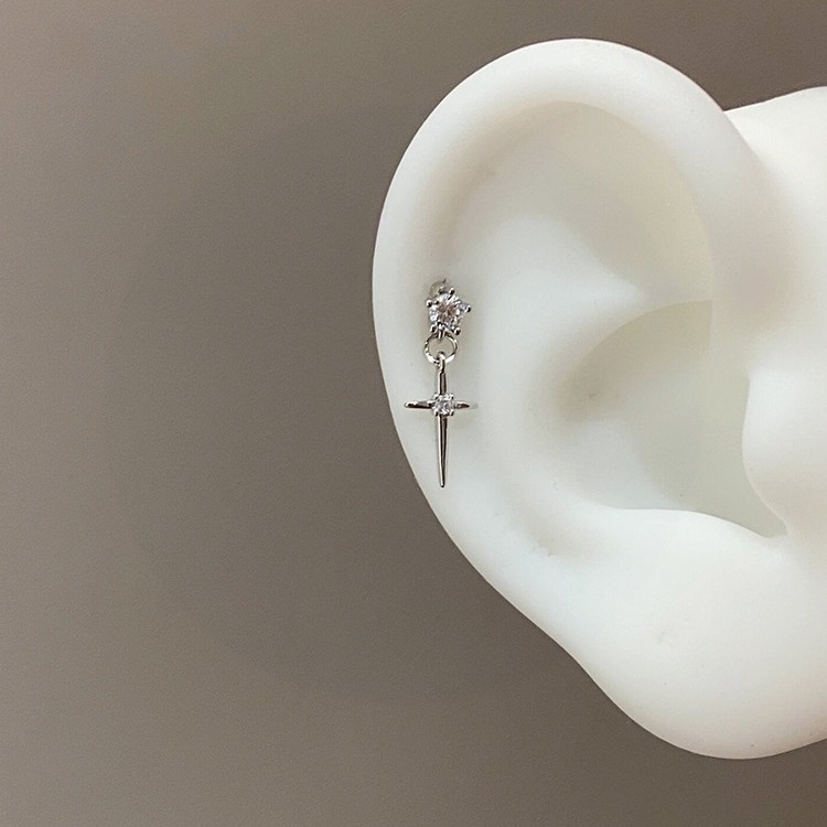 S925銀針超閃小衆精緻耳針三点セット女性シンプルで小型愛耳骨釘耳飾り