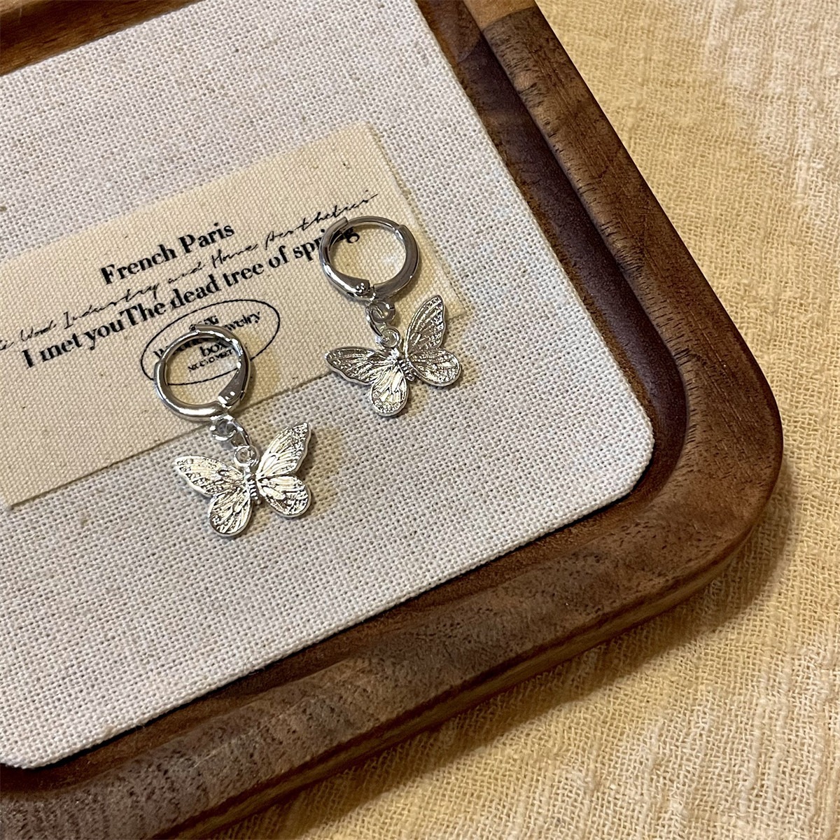 S925銀針手作銀色蝶レトロ新中国式気質通勤イヤリング女性耳飾り春夏耳輪新製品