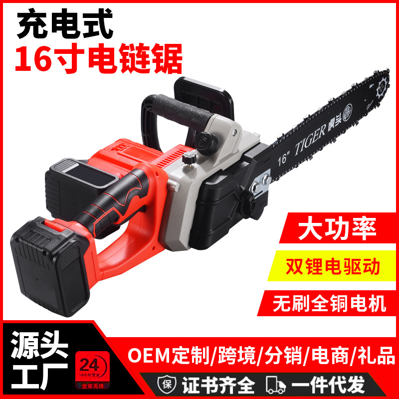 リチウム電気鋸充電ポータブルブラシレス16インチチェーンソー家庭用伐採鋸リチウムチェーンソー大出力鋸機